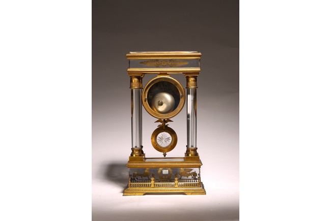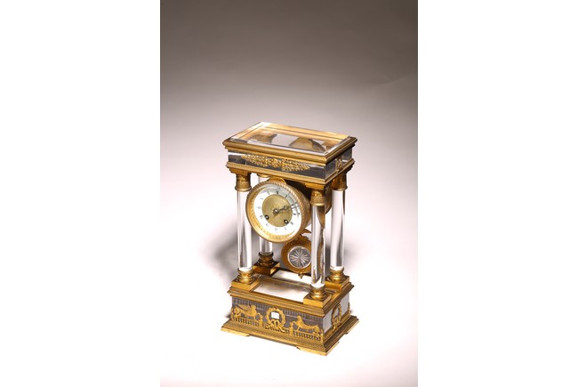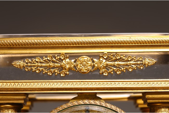 A FRENCH ORMOLU BRONZE AND CRYSTAL MANTLE CLOCK 18 世紀法國水晶座鐘