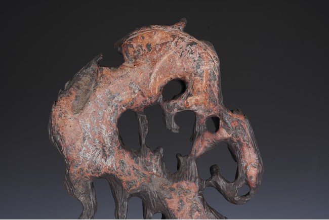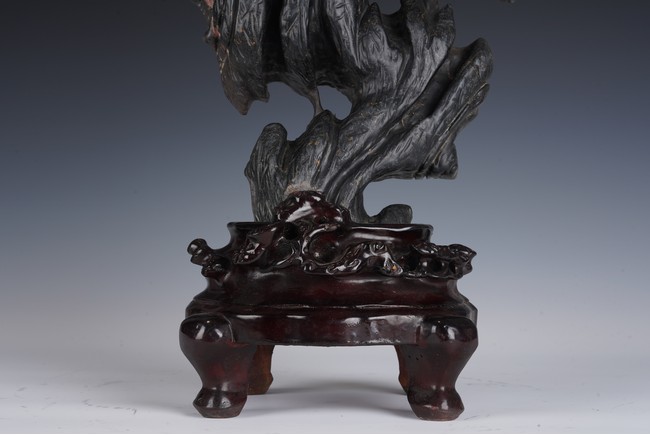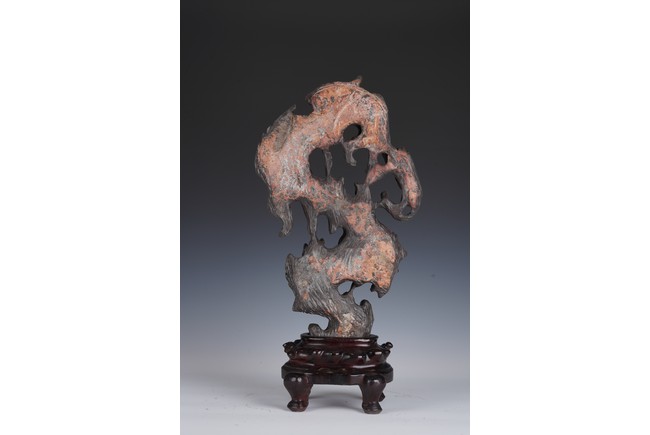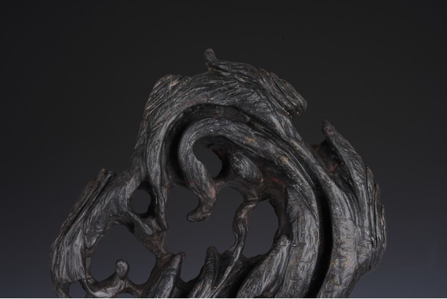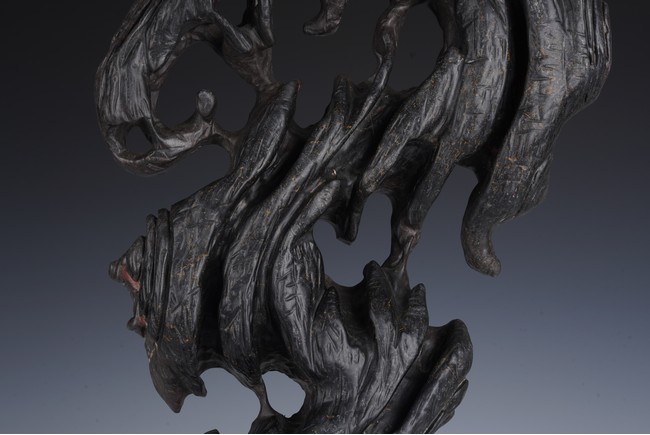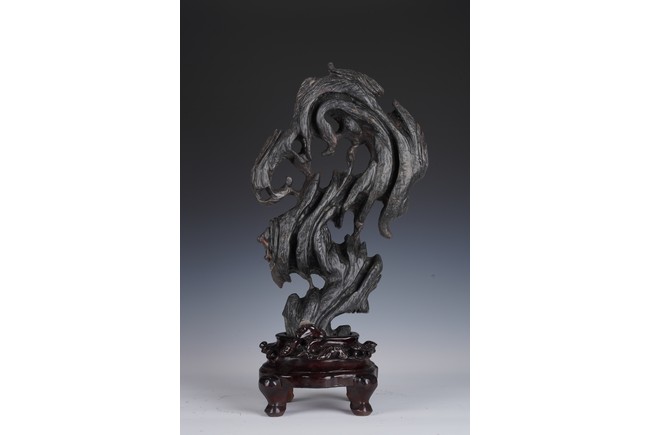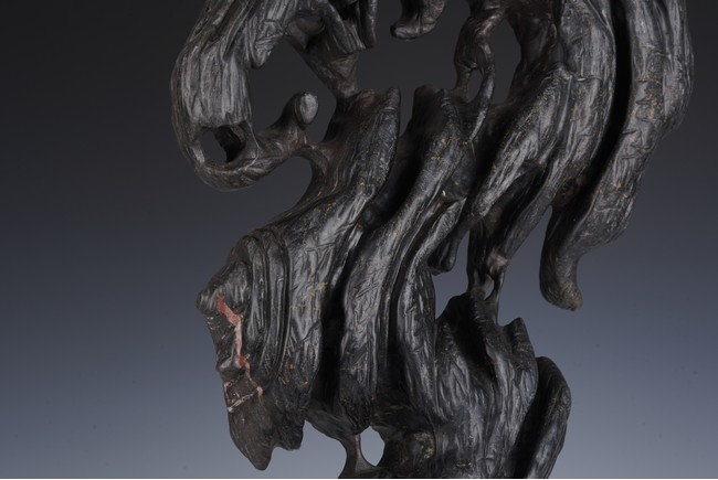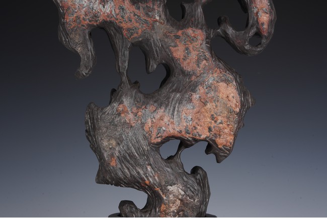 Of irregular vertical orientation and spiraling form, rising up like a cresting wave, with fitted wood stand. Republic period.