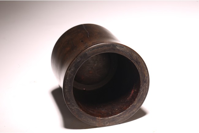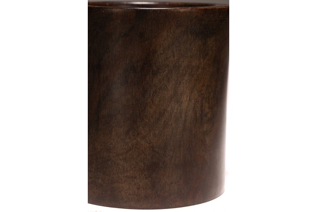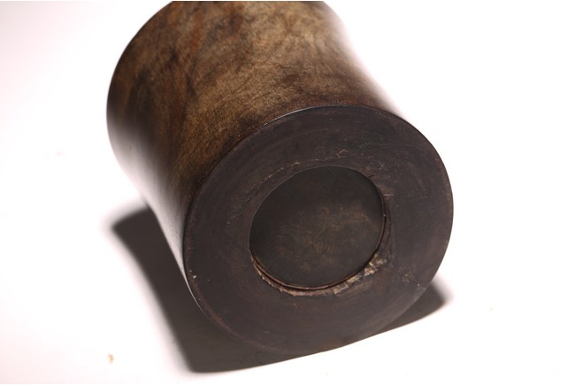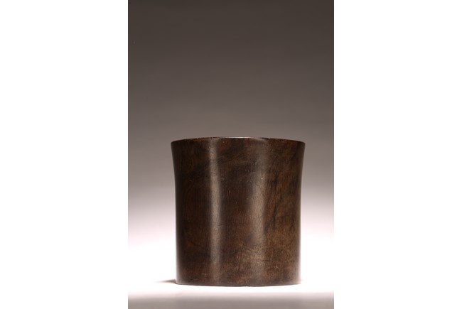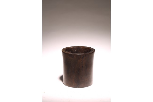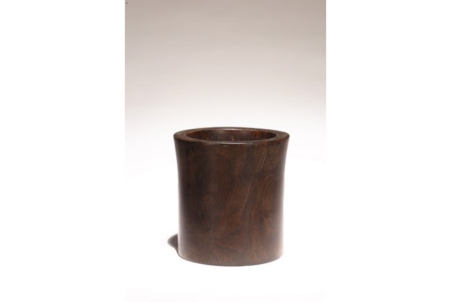 黃花梨製成,整木挖成,口外撇,束腹,圈足。素面無工,彰顯黃花梨的肌理之美。造型端莊大氣,而不失文雅,包漿厚重,線條優美,實屬文房佳品。