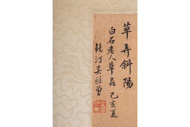 落款:白石老人草蟲已亥夏 鏡汀吳熙曾 白石老人。鈴印:吳熙曾 白石翁。