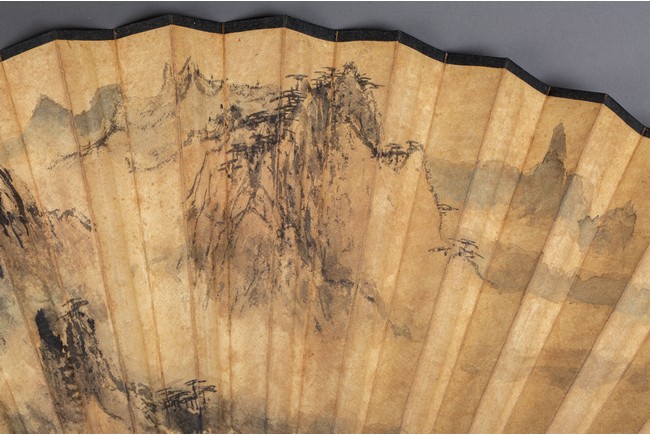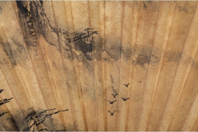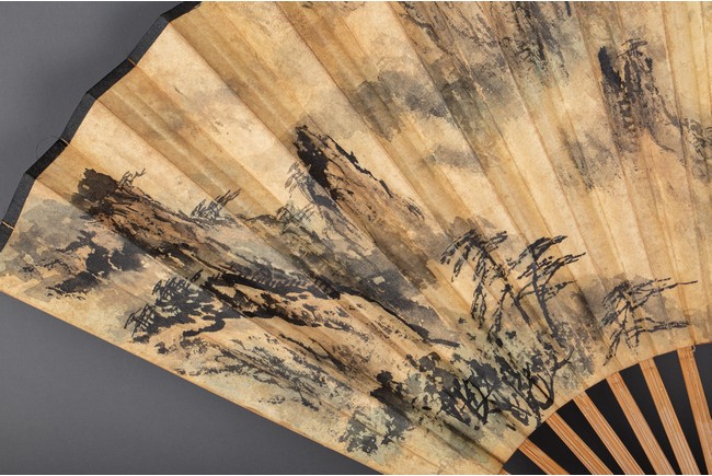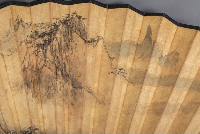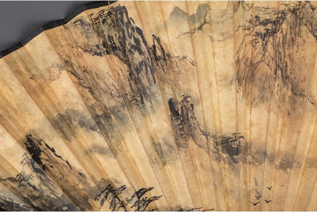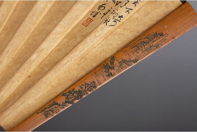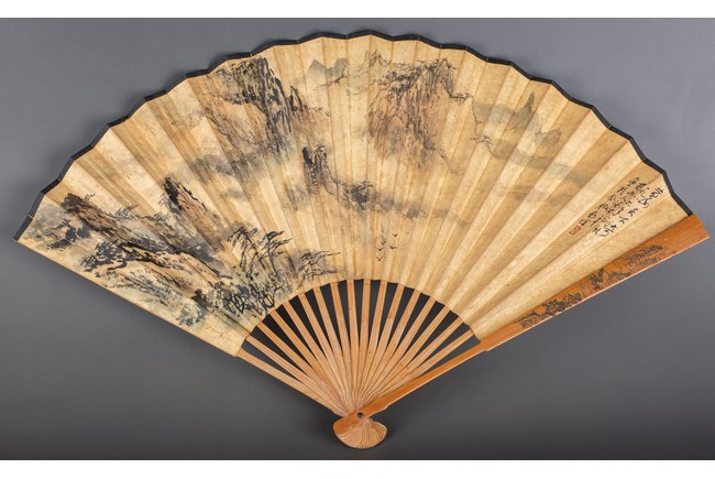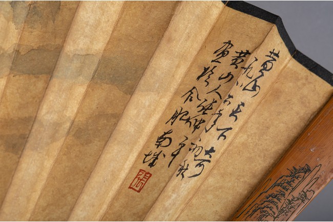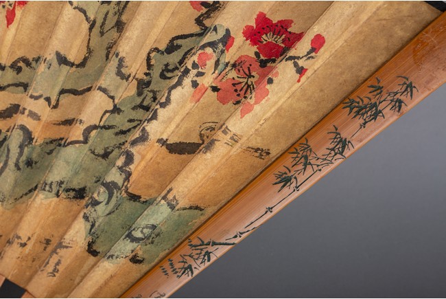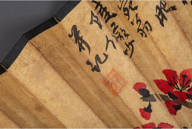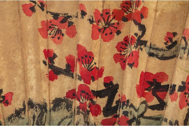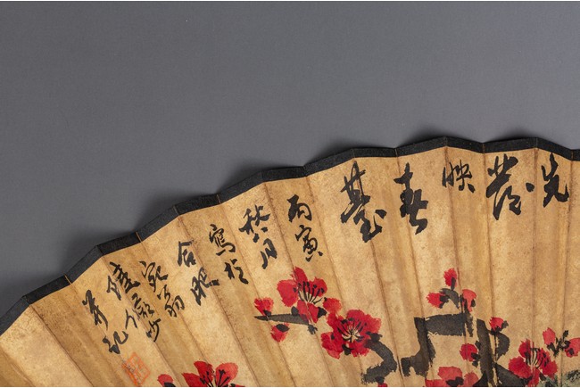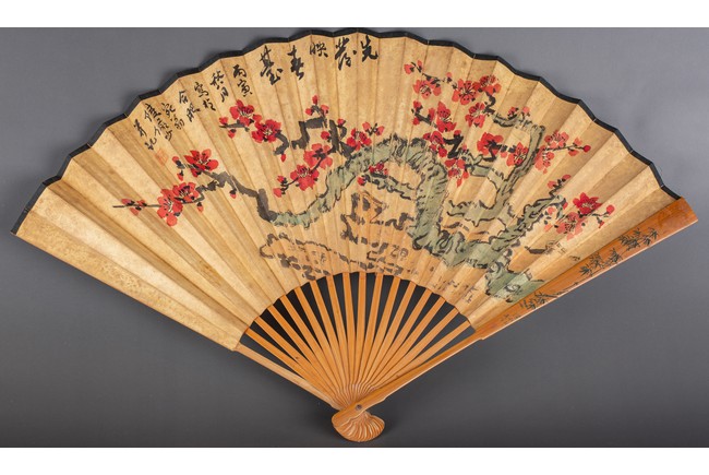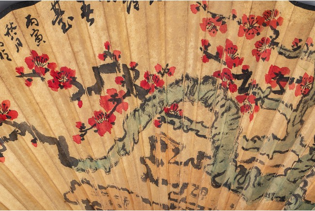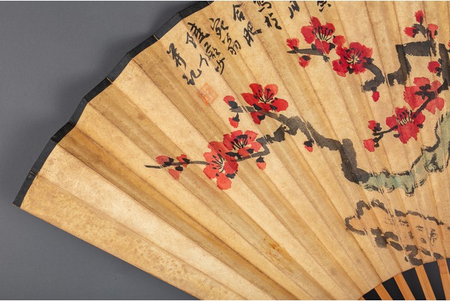 Chinese. A Chinese 'Plum Blossom' Fan Painting, with inscription and a seal mark, the reverse depicts a landscape scene.