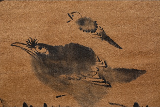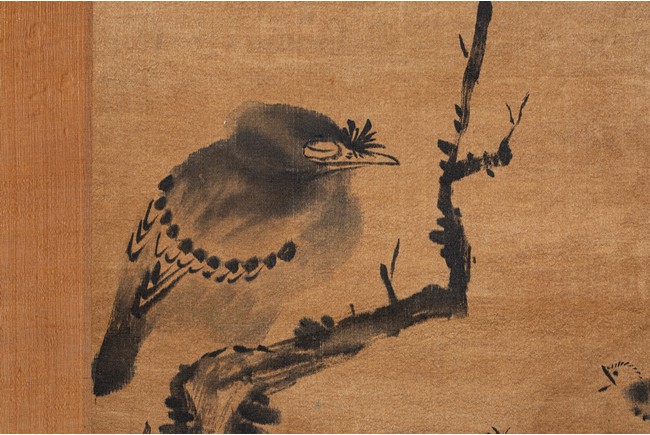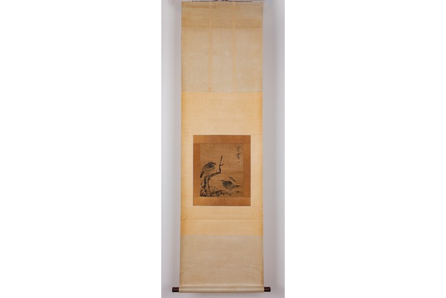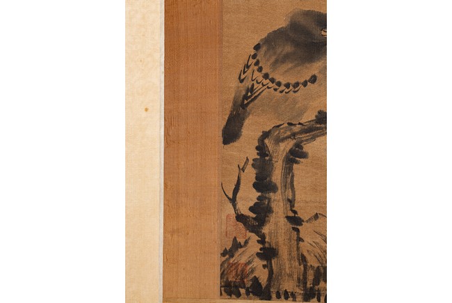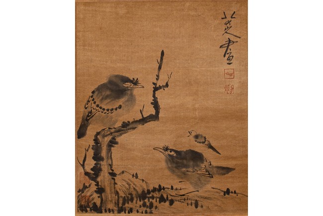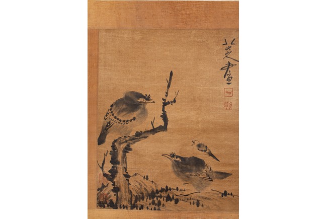 Chinese. Ink on Silk. Birds. Signed Bada Shanren with two seal marks. Hanging scroll. Attributed to Bada Shanren.