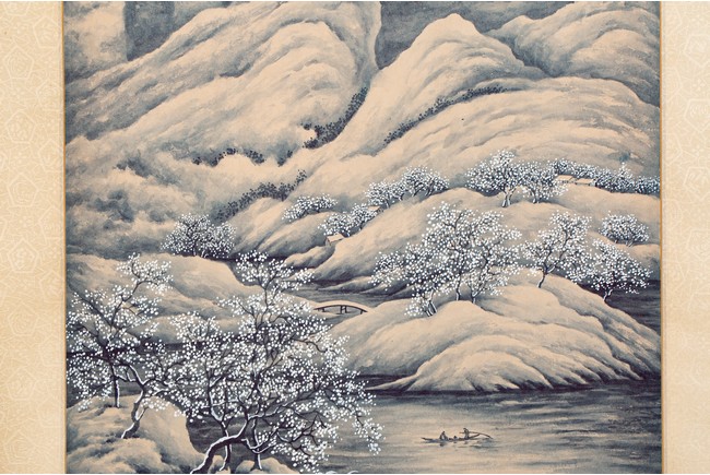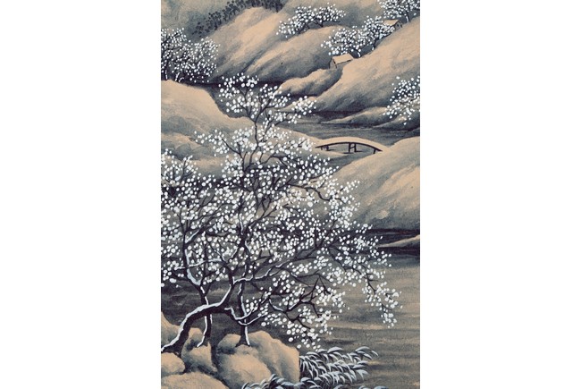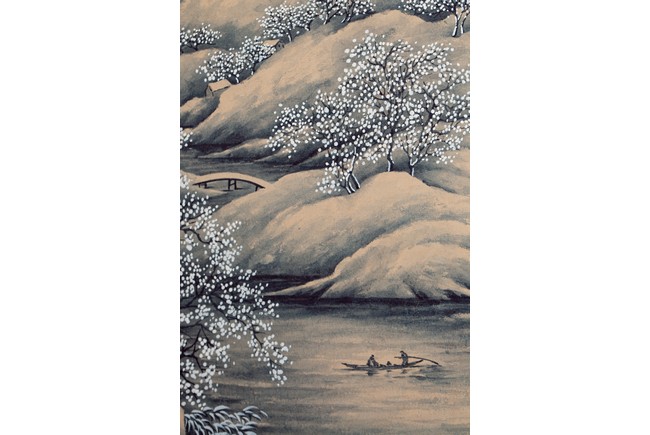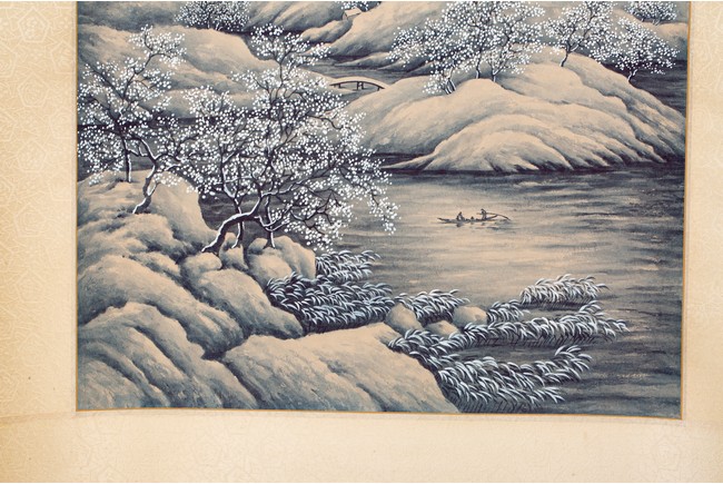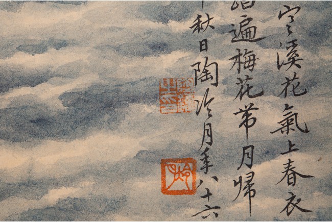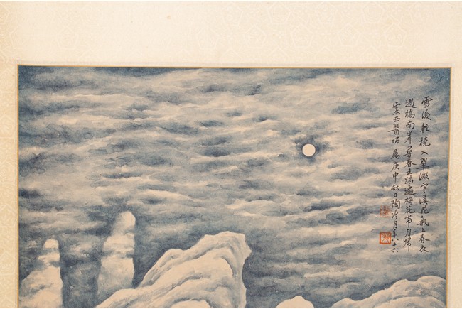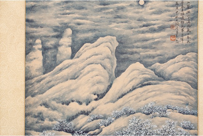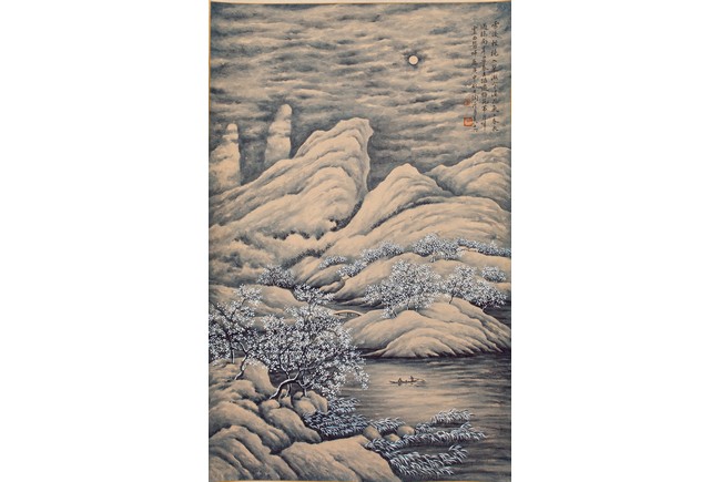 Chinese. Color and ink on paper. Moonlit Landscape. Inscribed and signed Tao Lengyue, with two seal marks. Attributed to Tao Lengyue.