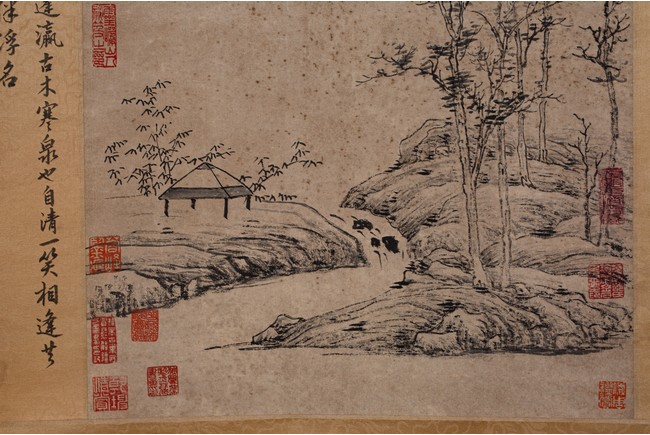 落款:晴天復過武陵守共尋花滿川 倪瓚;乙未孟月夏之月