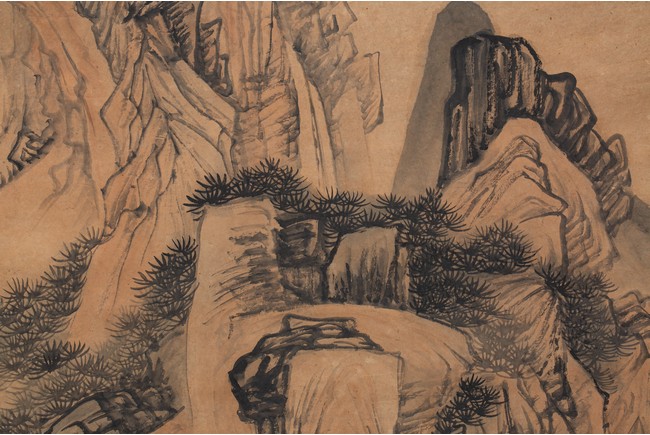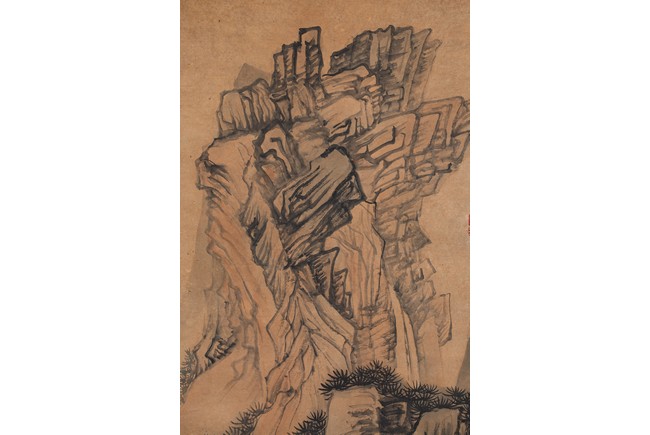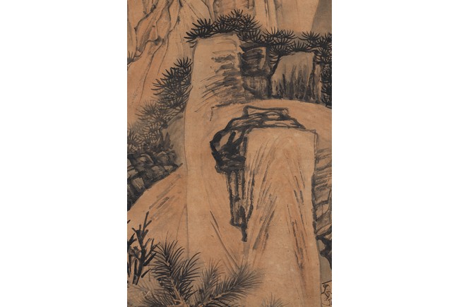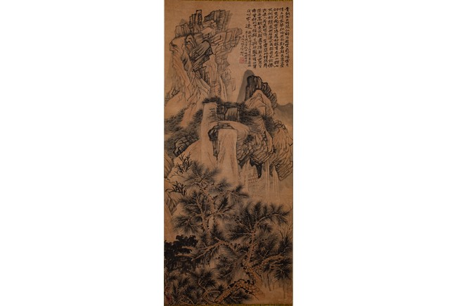 Chinese. Ink on paper. Inscribed and signed Da Dizi, with five seal marks. Hanging scroll. Attributed to Shi Tao.