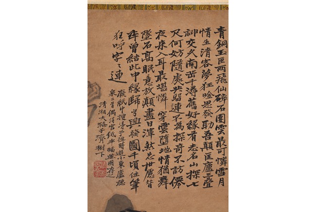 石濤:明末清初著名畫家,原姓朱,名若極,廣西桂林人,小字阿長,別號很多,如大滌 子、清湘老人、苦瓜和尚、瞎尊者,法號有元濟、原濟等,明靖江王朱亨嘉之子,與弘仁、 髡殘、朱耷合稱“明末四僧”