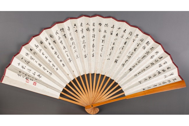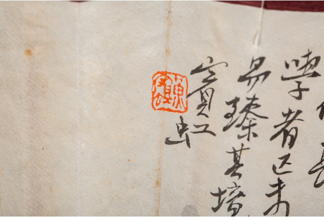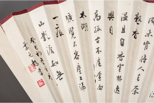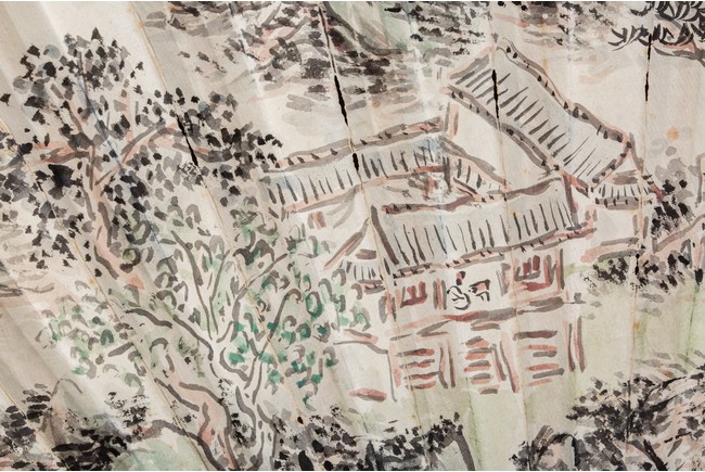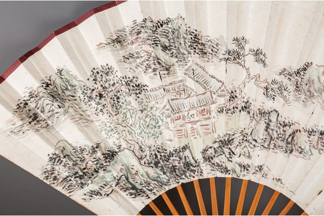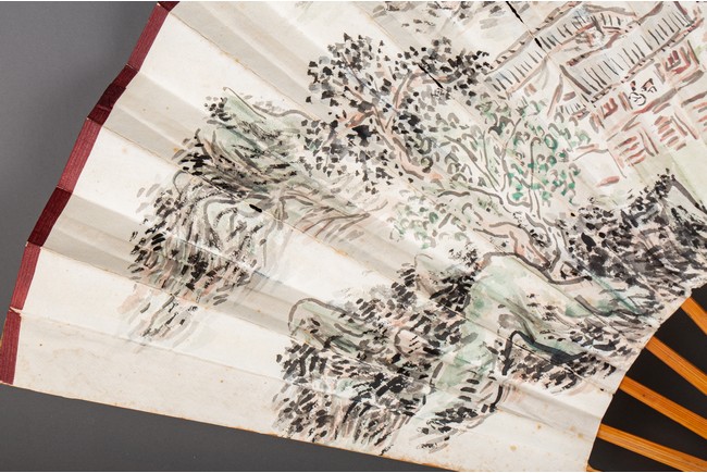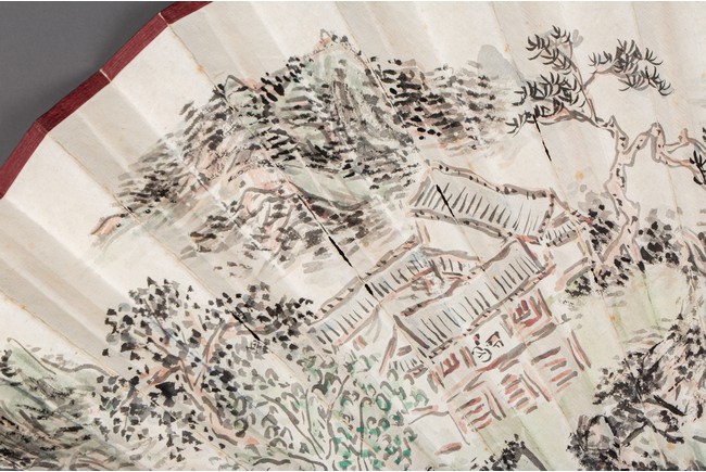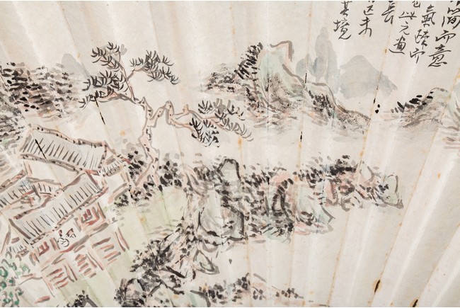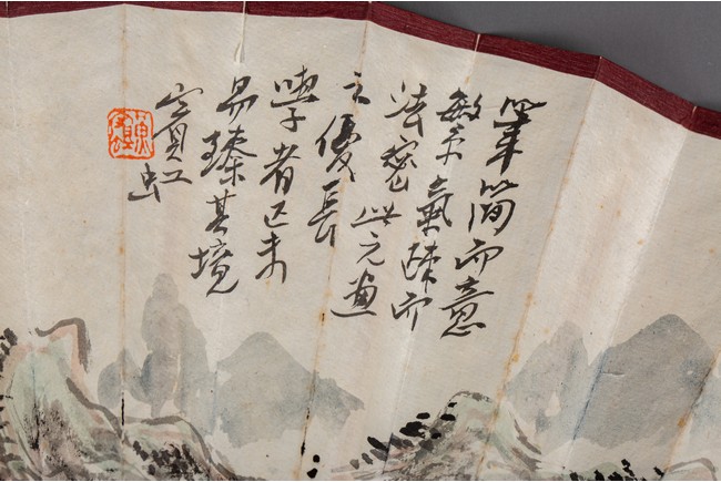 Chinese. Color and ink on paper. landscape. Inscribed and signed Binhong with one seal mark. The back with calligraphy signed Ye Yuanlong with two seal marks.