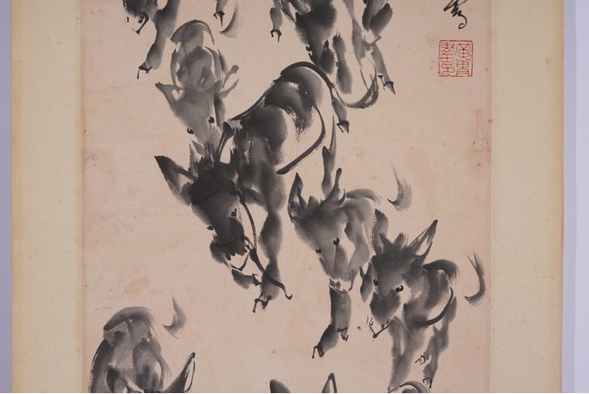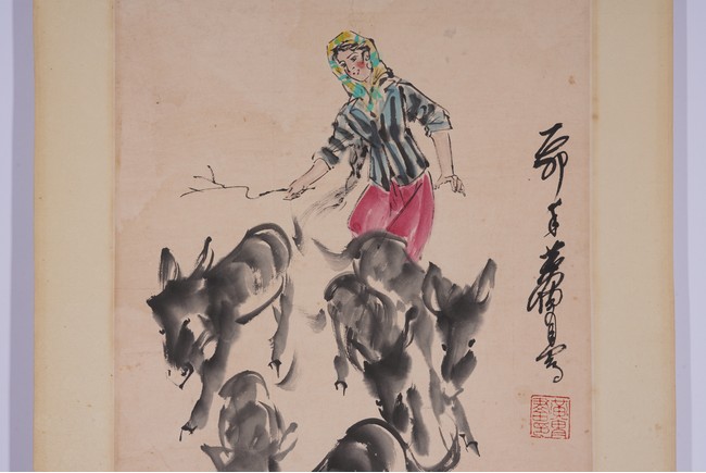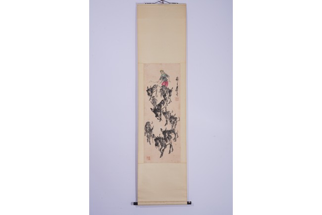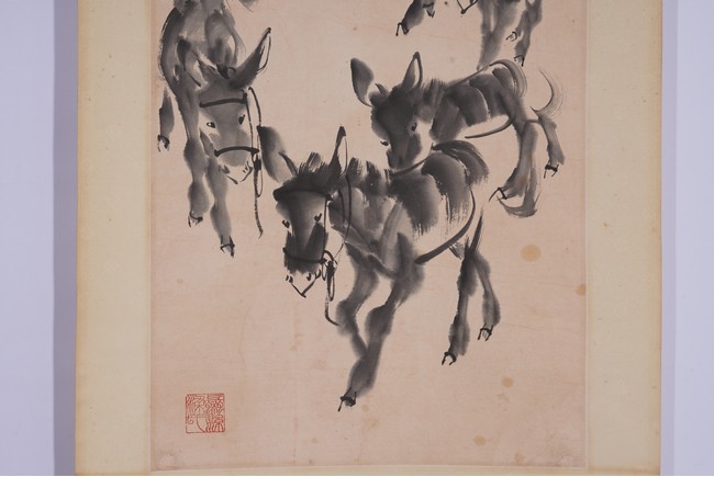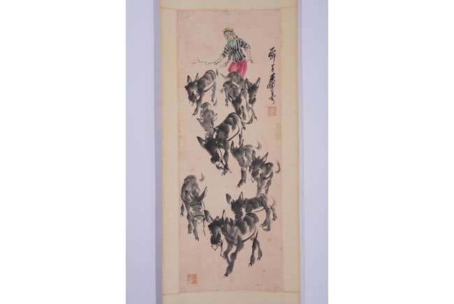 Chinese. Figure and Donkeys. Inscribed and signed. Attributed to Huang Zhou