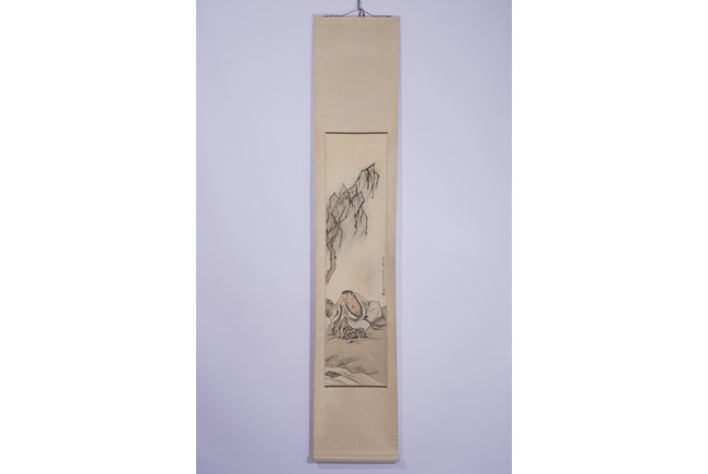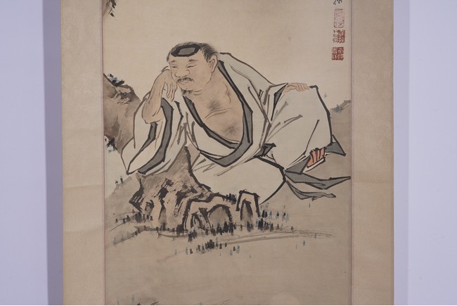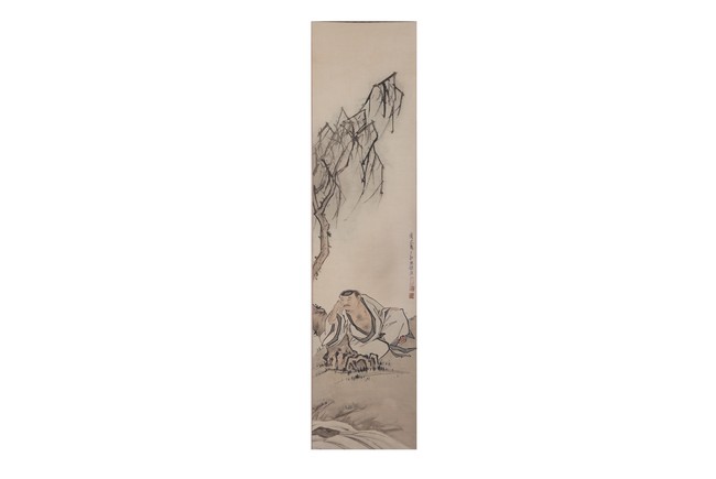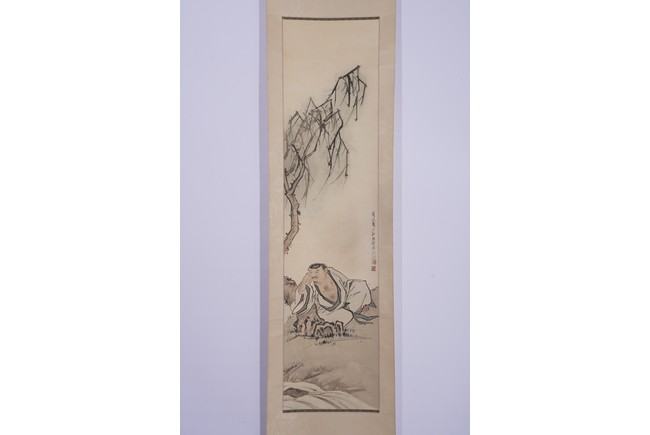 Chinese. Figure. Color and ink on paper. Hanging scroll. Inscribed and signed Xu Cao with three seal marks.