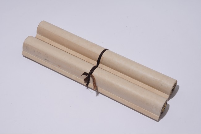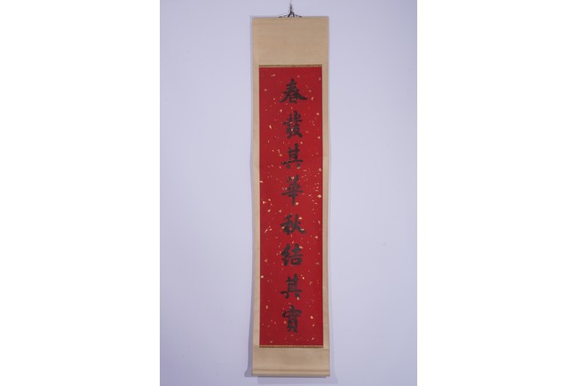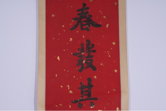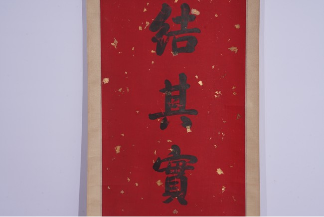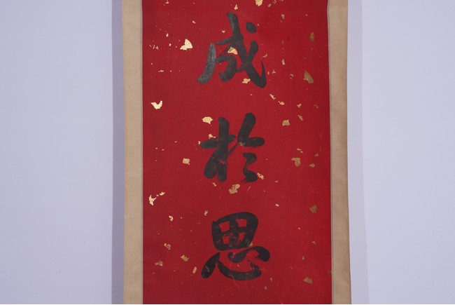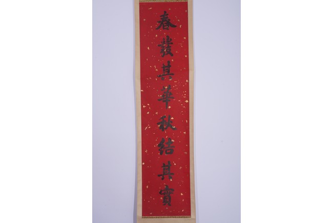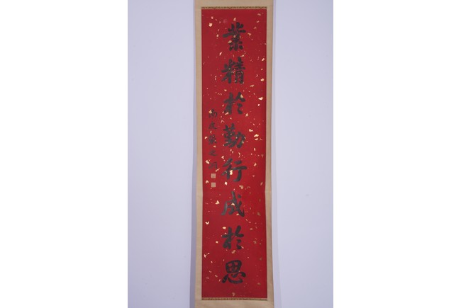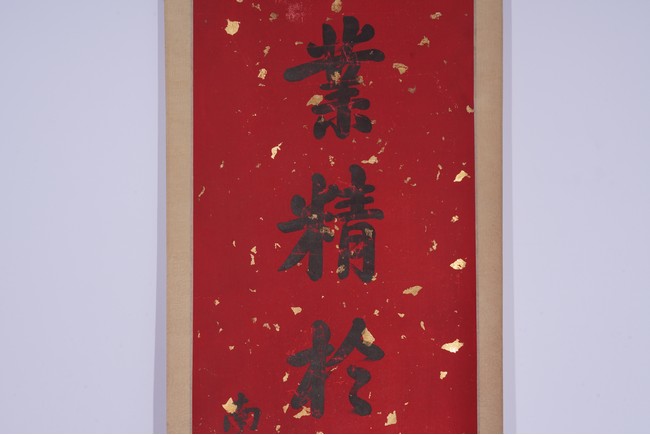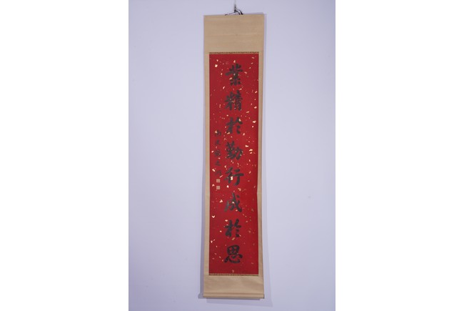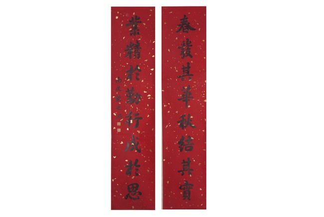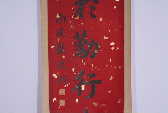 Chinese. Eight character Regular Script Calligraphy Couplet. Hanging scroll. Signed Zhang Zhidong with two seal marks.