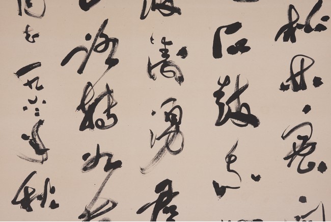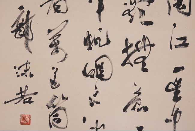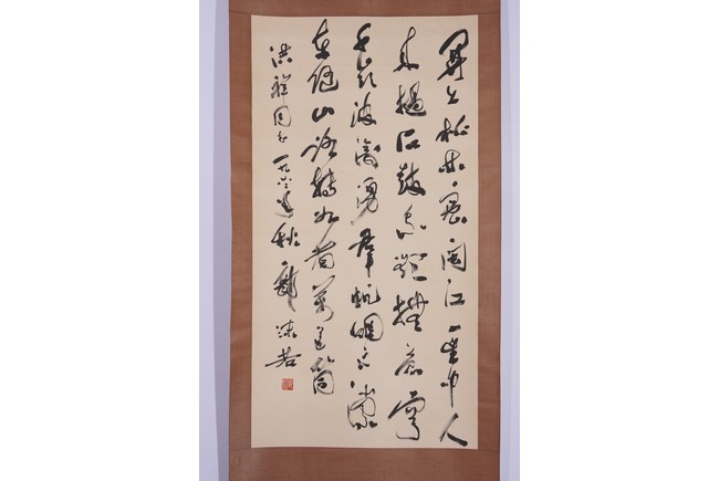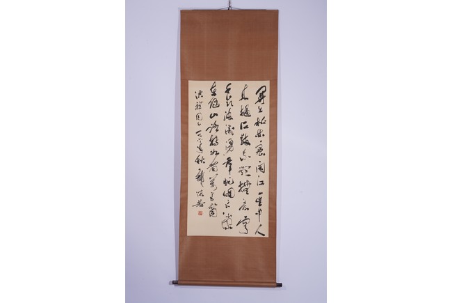 Chinese. Ink on paper. Cursive script calligraphy. Signed Guo Moruo with one seal mark. Hanging scroll.
