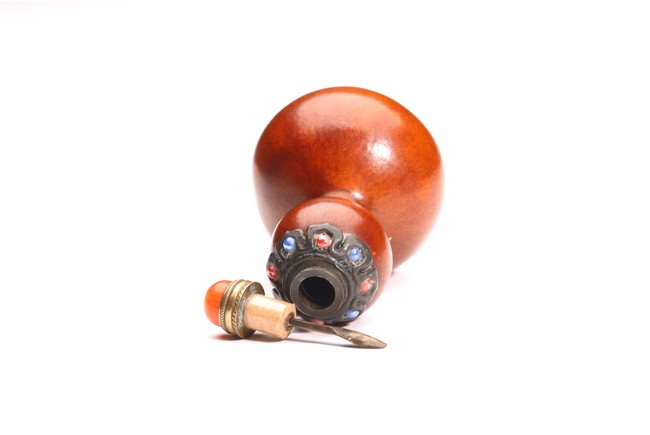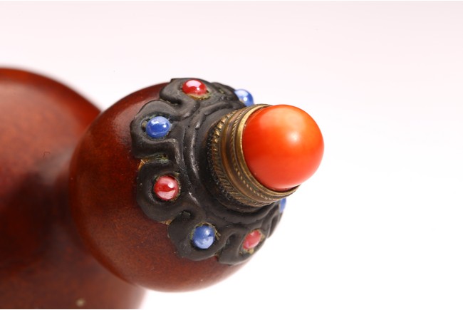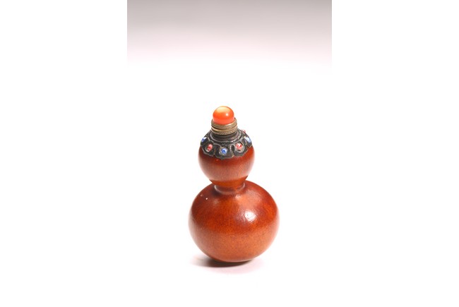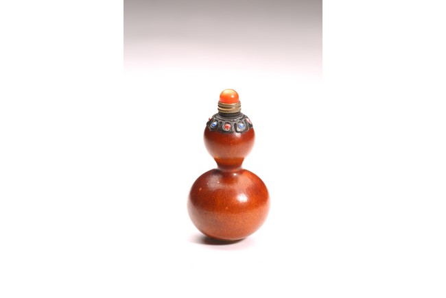 Modelled in the form of double gourd with beads inset around the mouth. Qing Dynasty period.