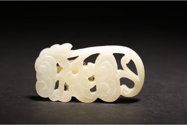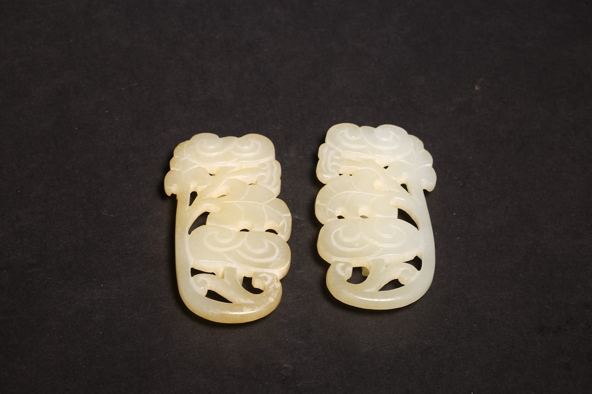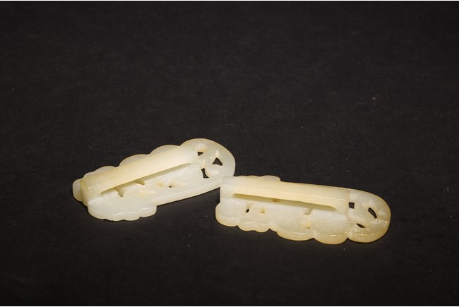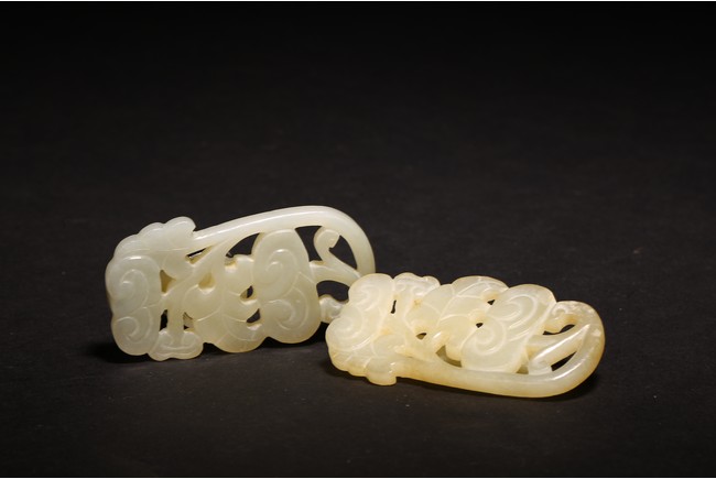 清白玉製成,玉質溫潤,飾“靈芝紋”,形像生動,刻工細緻。