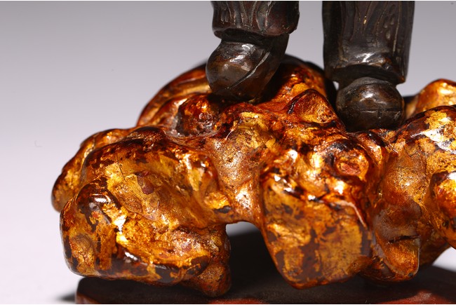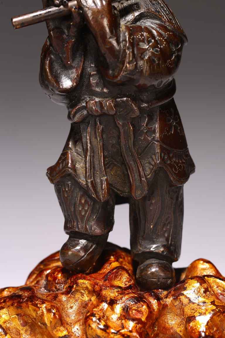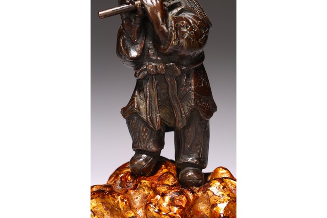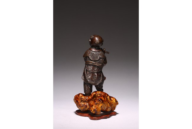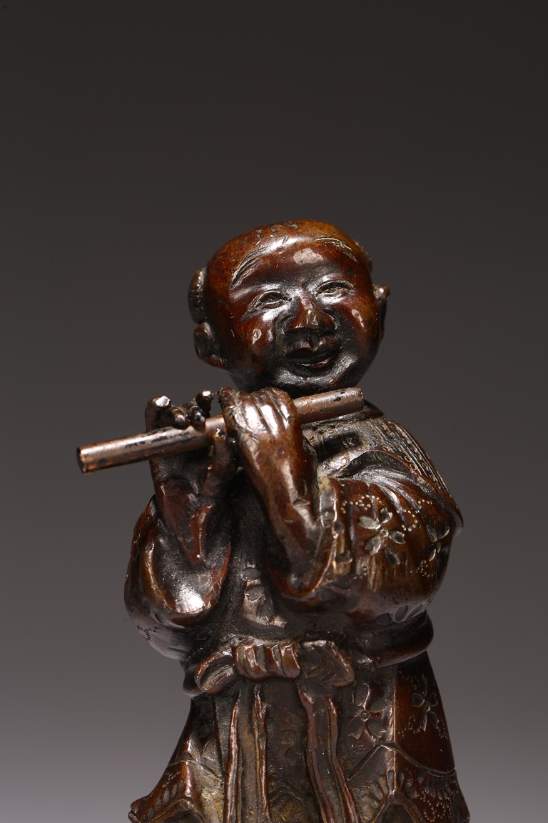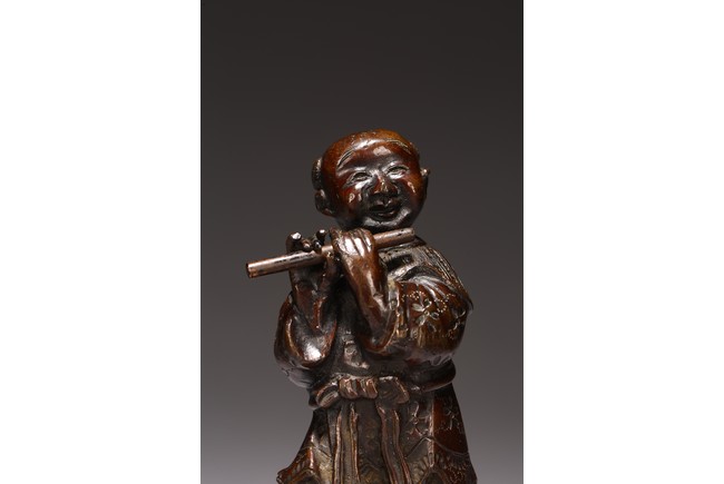 Chinese. The boy shown standing playing flute on a lacquered wood base resembling rock. Qing Dynasty period, 18th century.