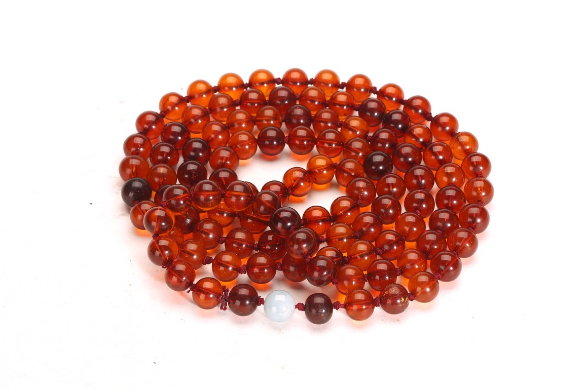 天然琥珀是寶石的一種,它在所有寶石裏面是最輕的。此天然琥珀佛珠(108粒)粒大均勻,每一粒珠子光鮮透明。從古往今佛珠是伴隨著高僧大德在誦經時體現對佛的一片真誠。