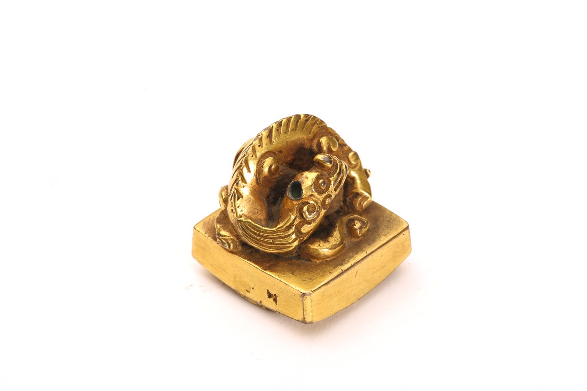 此印工藝精湛,印鈕爲獸鈕,獸作回首狀,雙目圓瞪,造型雄健,肌肉線條蒼 勁有力,毛發清晰,靈動自然。底部有印文,佈局嚴謹工整,古樸流暢,遒勁有力。