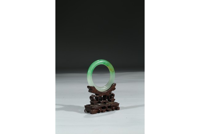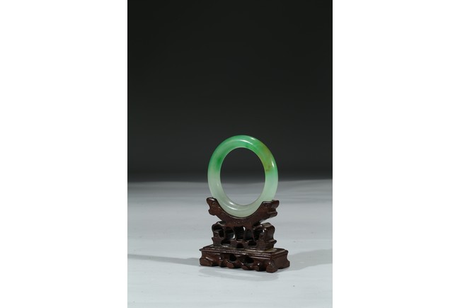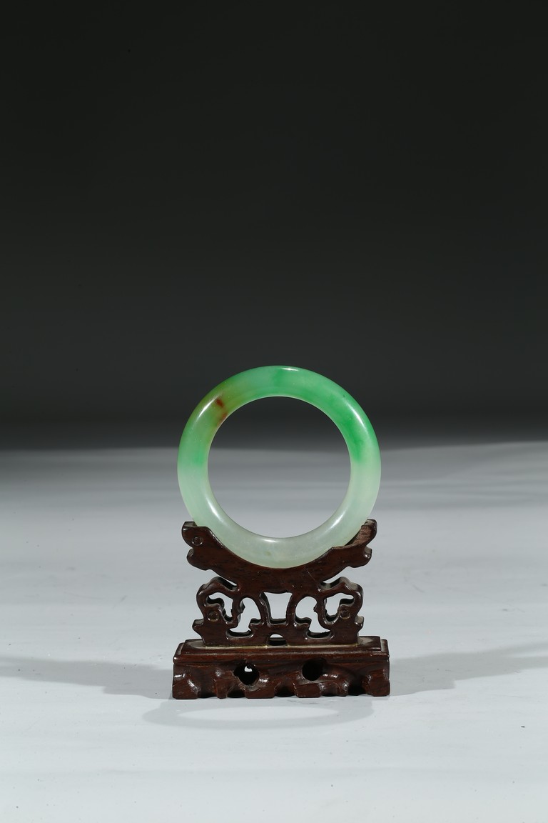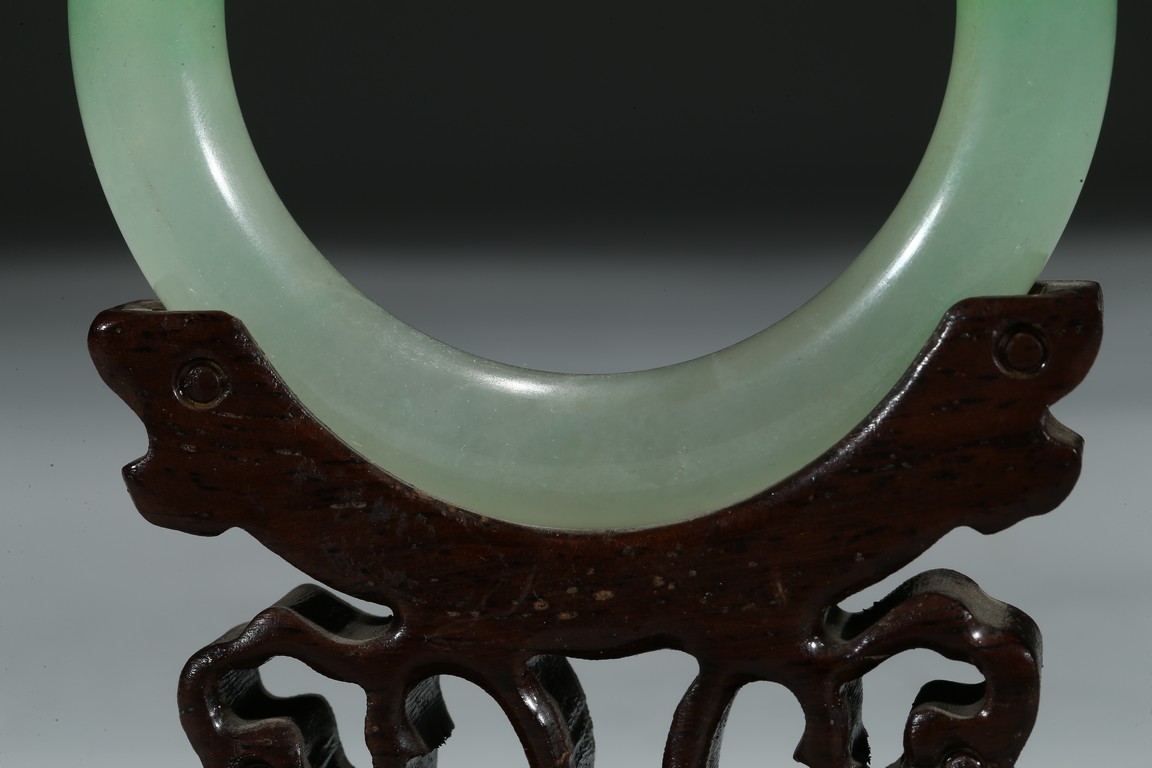 A HARDSTONE CARVED BANGLE WITH STAND 翡翠手鐲