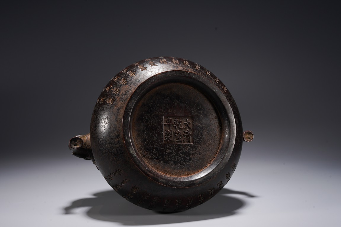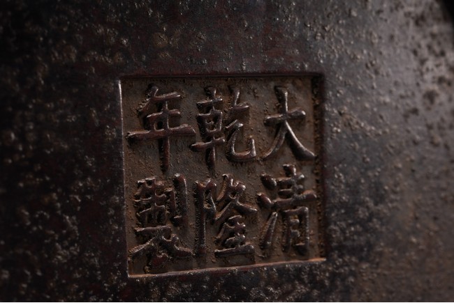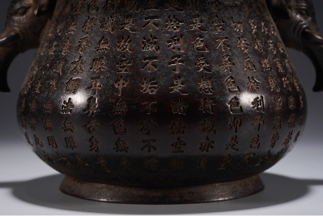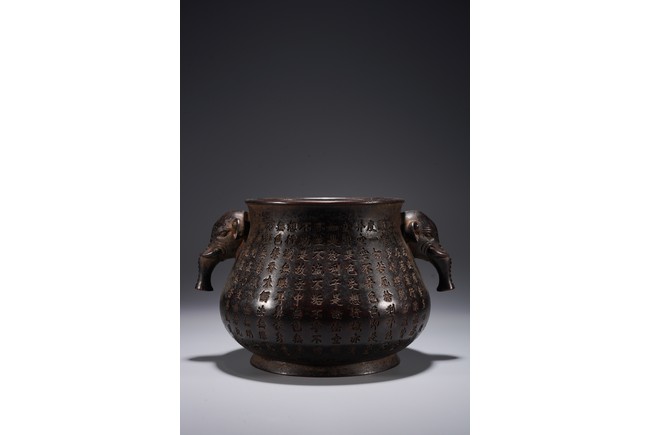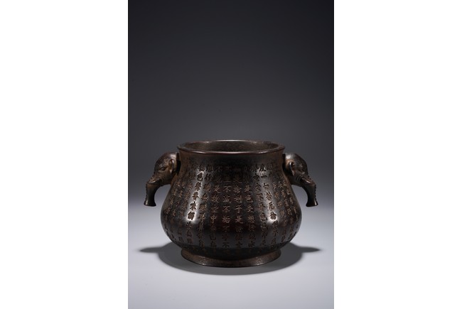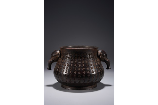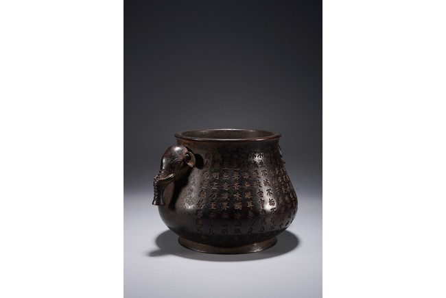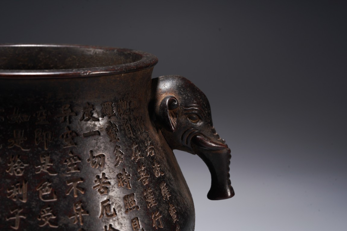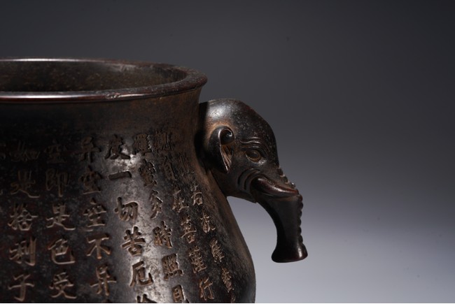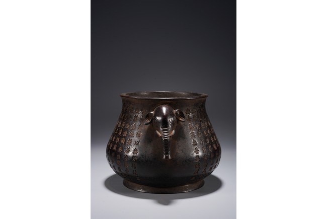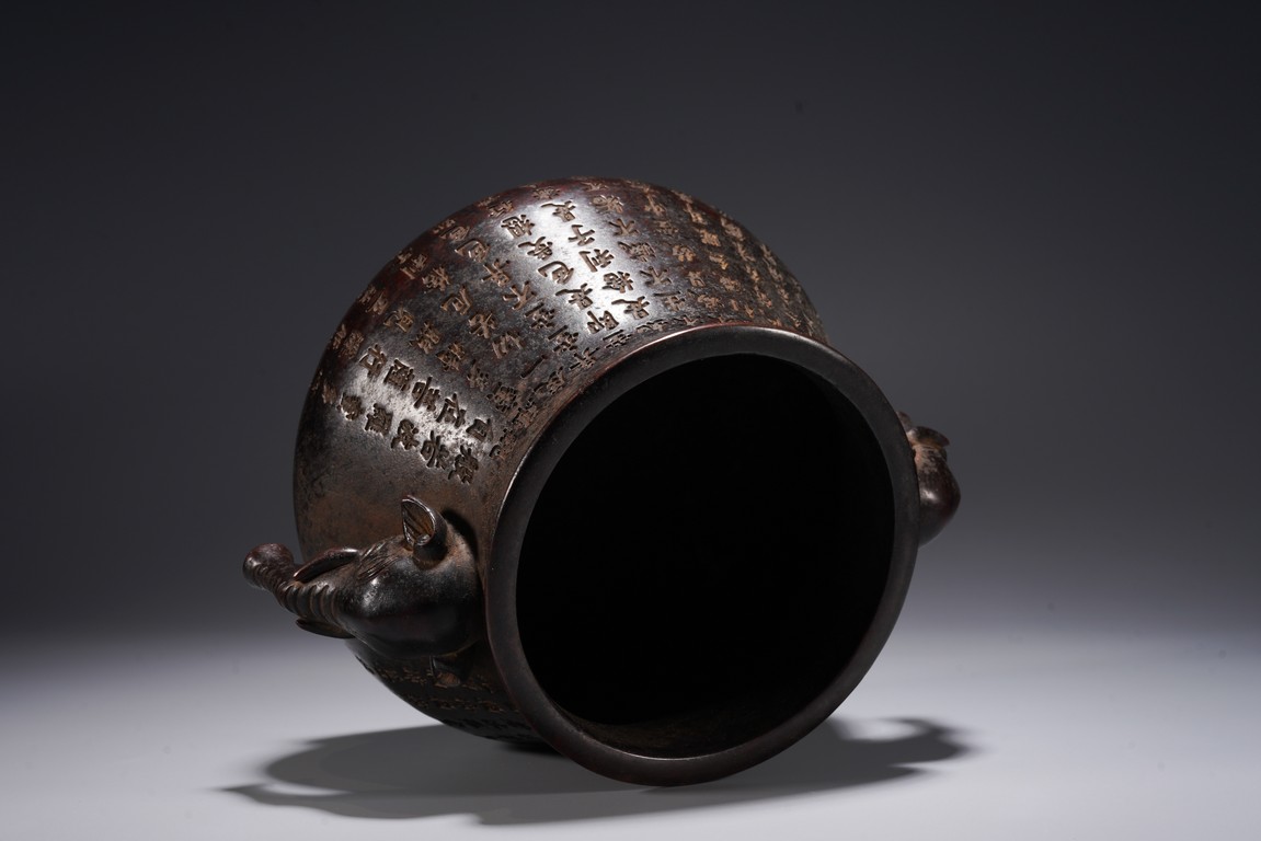 The censer body inscribed with inscriptions and flanked with a pair of elephant ear handles