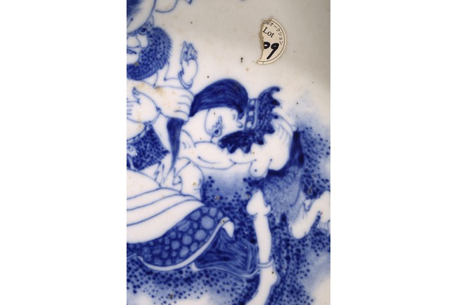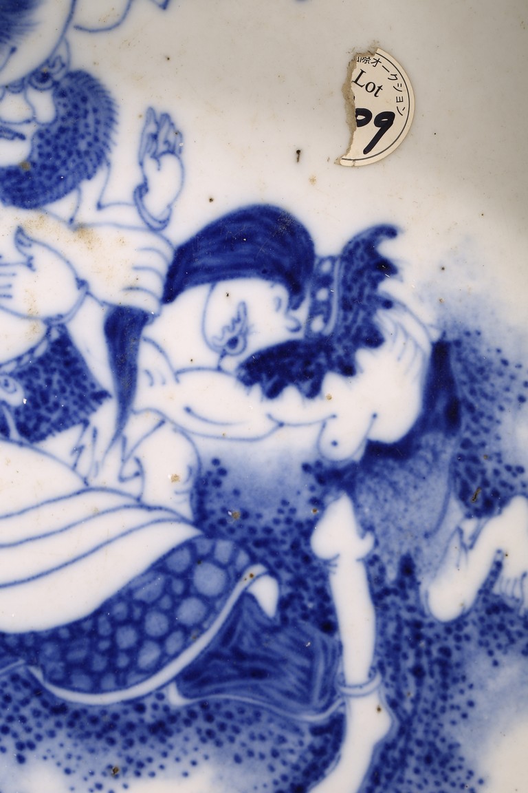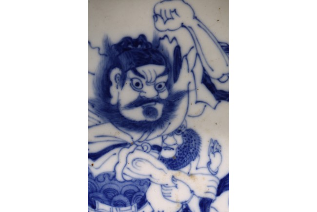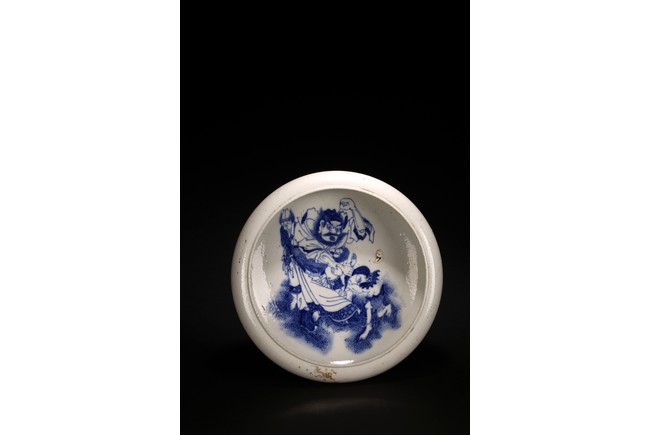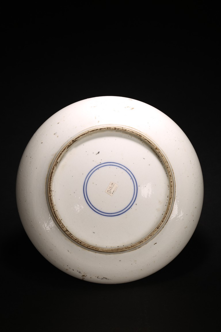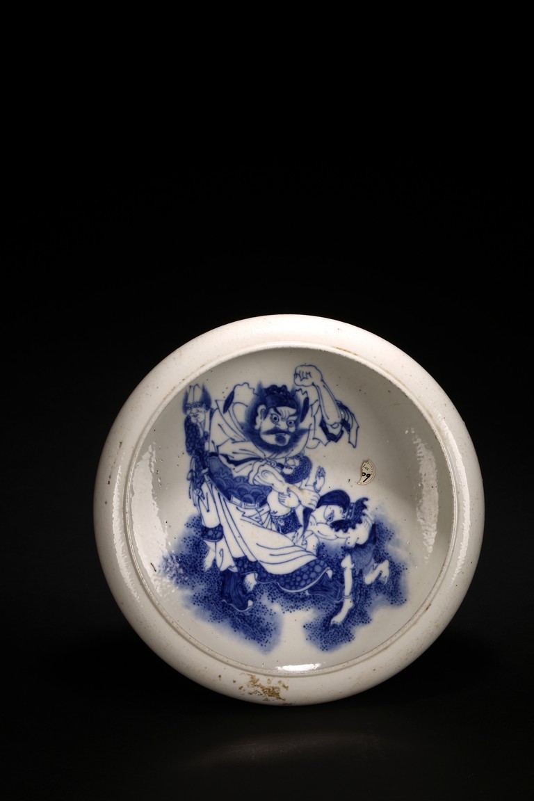 Chinese. The shallow rounded sides rising from short straight foot to a incurved rim, the interior finely painted with the 'Demon Queller' Zhong Kui, the base painted with a double ring. Qing Dynasty period.