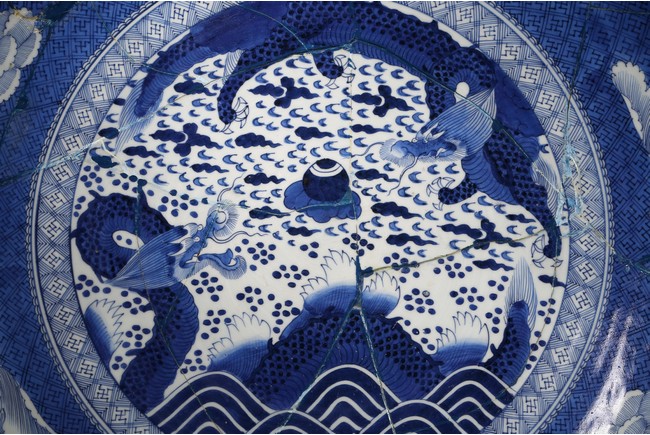 The interior finely decorated with two ferocious dragon chasing flaming pearl within a medallion, encircled by a geometric band and alternating floral motif, the base with six character chenghua mark. Ming Dynasty period.