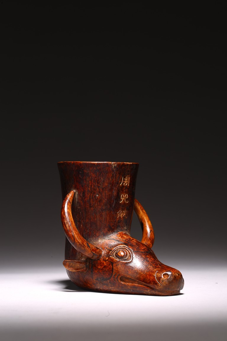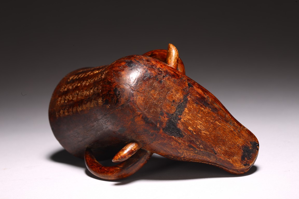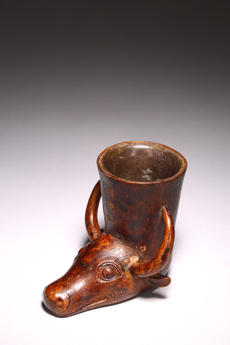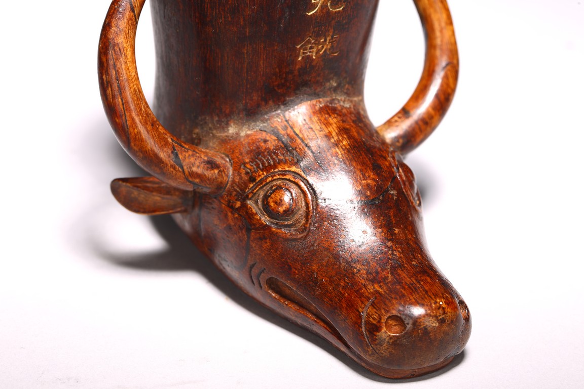Chinese. The ram head vessel well hollowed inscribed with three characters matching the name, the reverse inscribed with poem, with characteristic agarwood aroma.