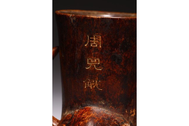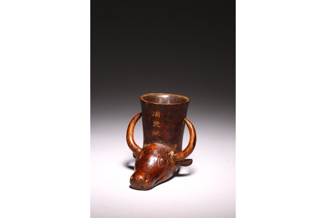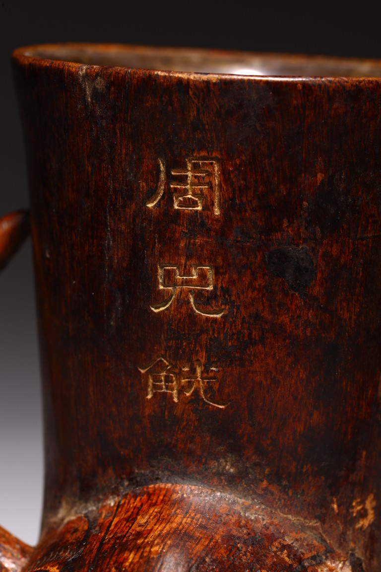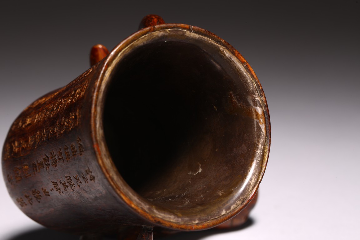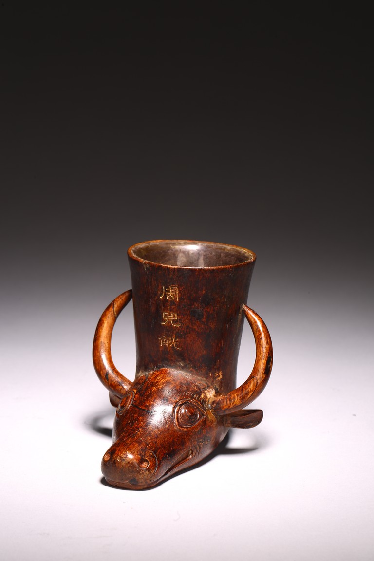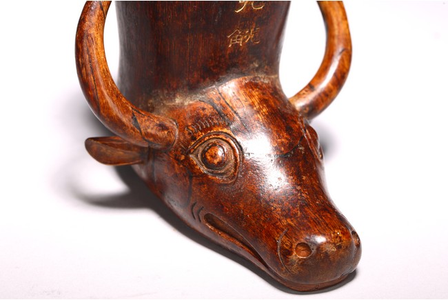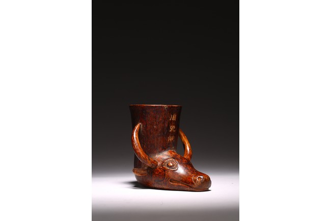 Chinese. The ram head vessel well hollowed inscribed with three characters matching the name, the reverse inscribed with poem, with characteristic agarwood aroma.
