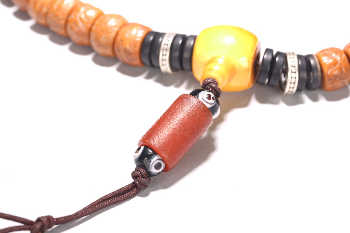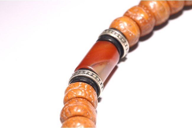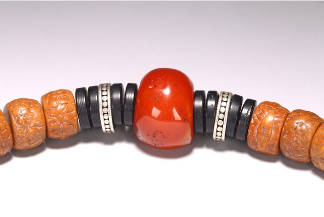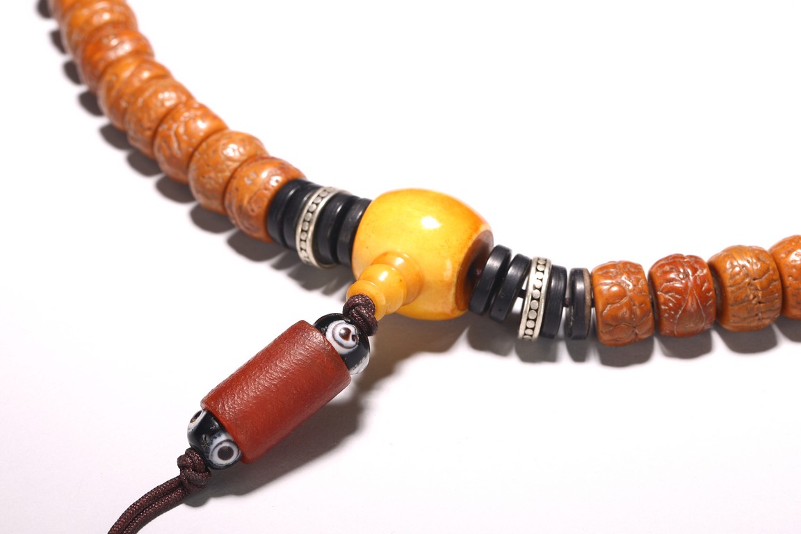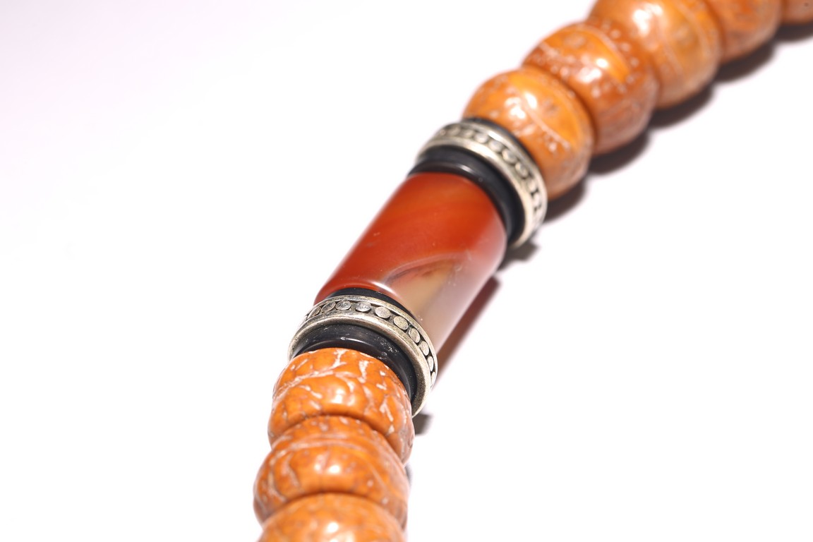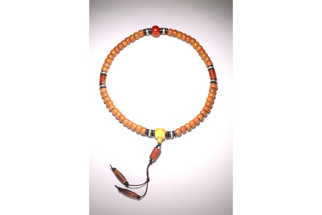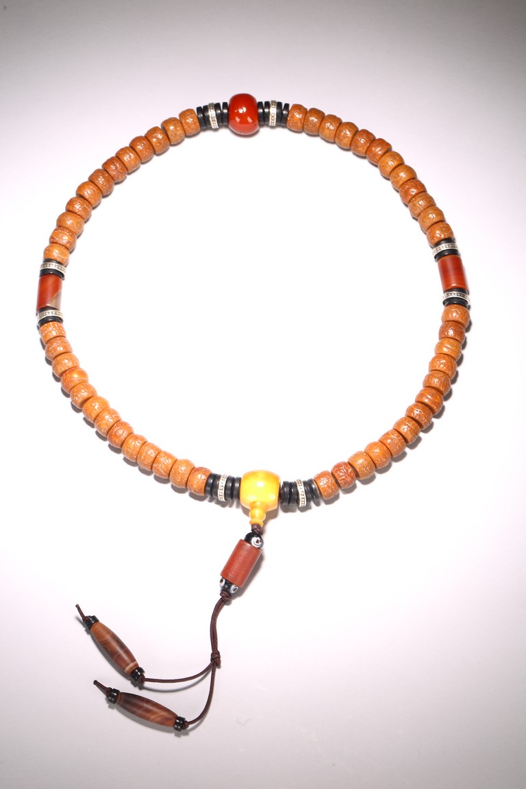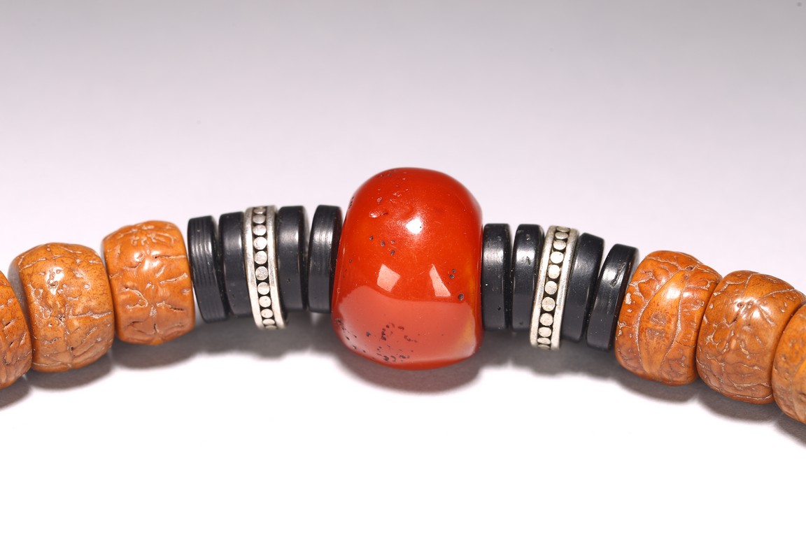 Chinese or Tibetan. Consisting of polished puti beads spaced by large beads.