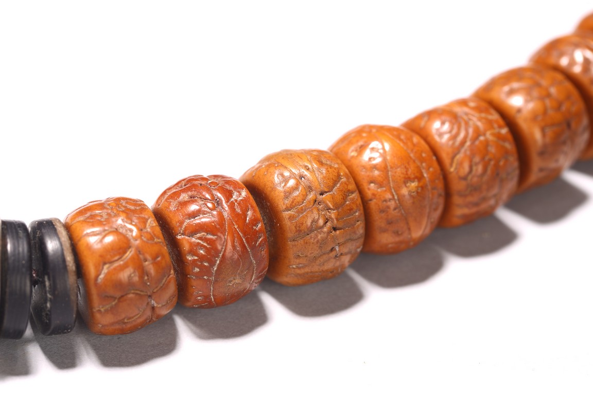 A CHINESE OR TIBETAN BUDDHIST PUTI BEAD NECKLACE 鳳眼菩提佛珠