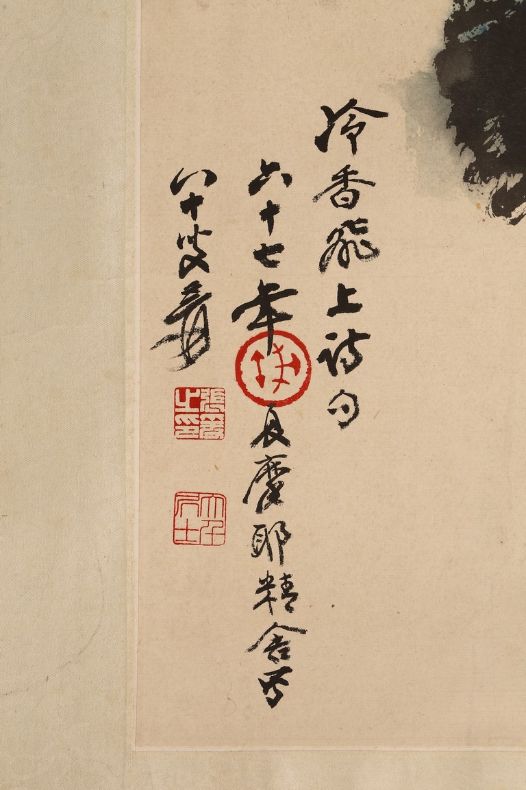 款識:冷香飛上詩句。六十七年夏摩耶精舍寫,八十叟爰。 鈐印:張爰之印、大千居士、戊午(1978)、大千豪發來源: 洛杉磯醫師藏家收藏 出版:《張大千畫集》選16 Provenance: From An important Los Angeles physician's collection