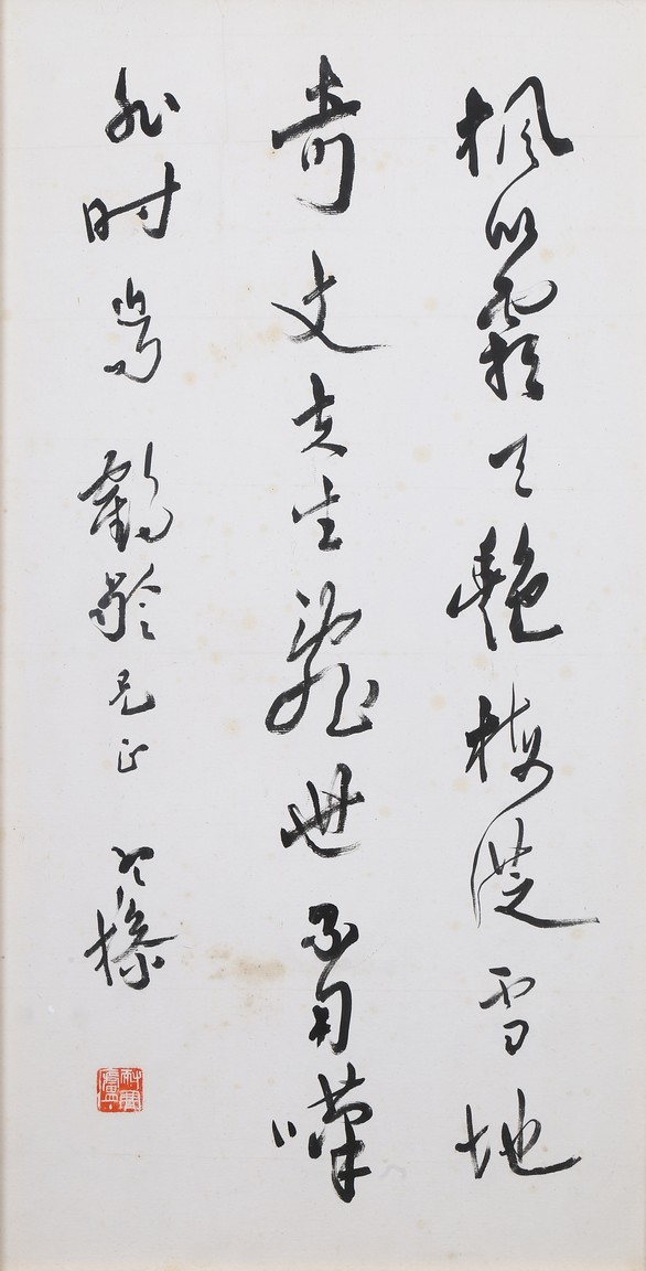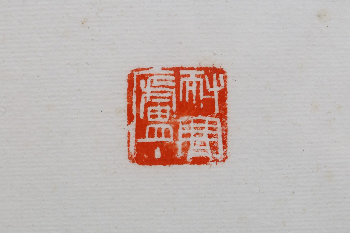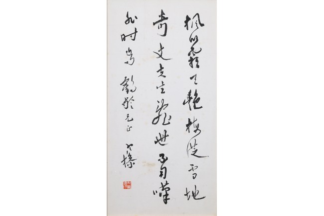 Ink on paper. Running script calligraphy. Framed. Signed and with tribute, with one seal of the artist.
