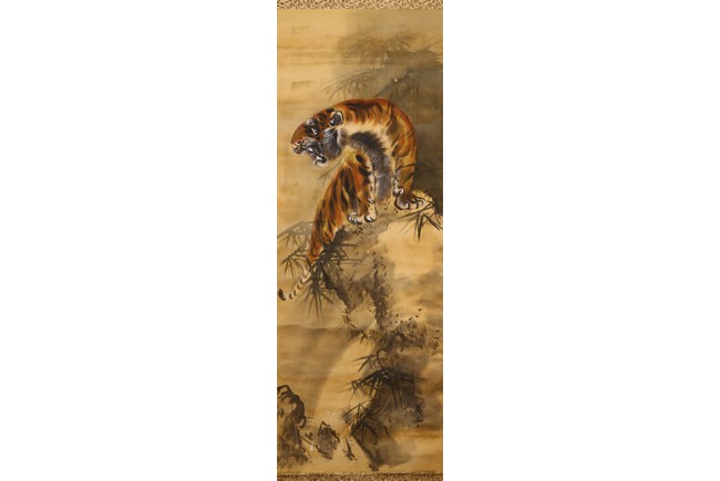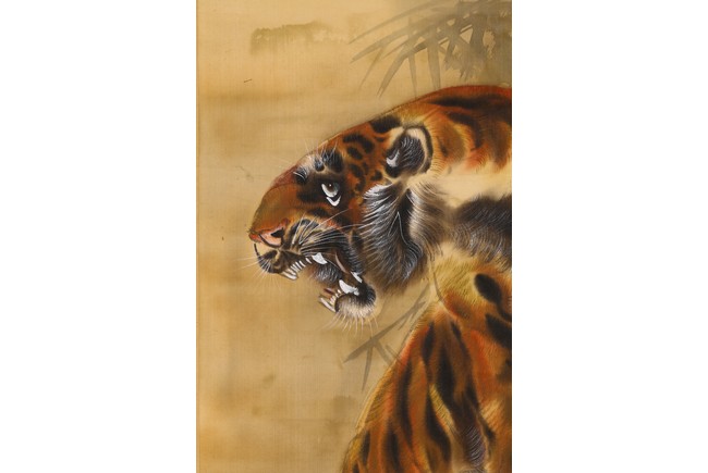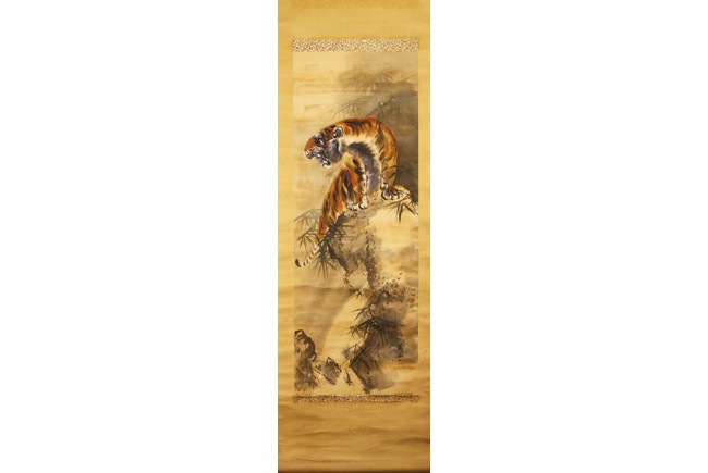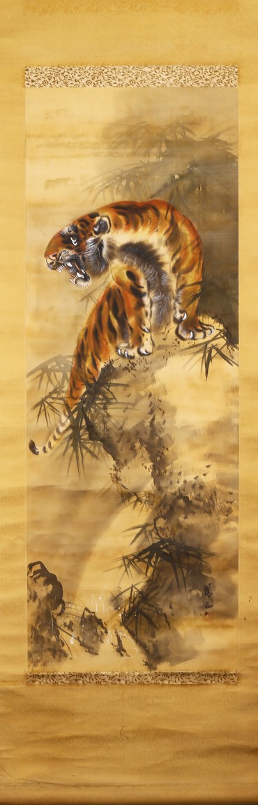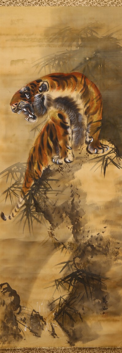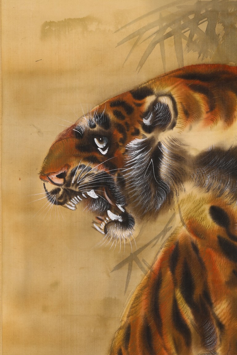 Color and ink on silk. Tiger. Hanging scroll. Anonymous.