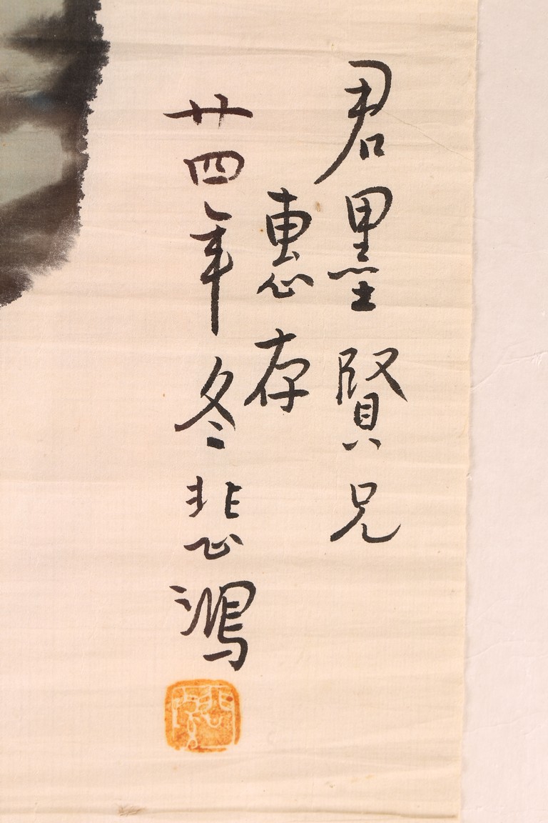 Color and ink on paper. Cat. Inscribed and signed Beihong, with one seal of the artist, dedicated to Jun Mo and attributed to the year of 1935.