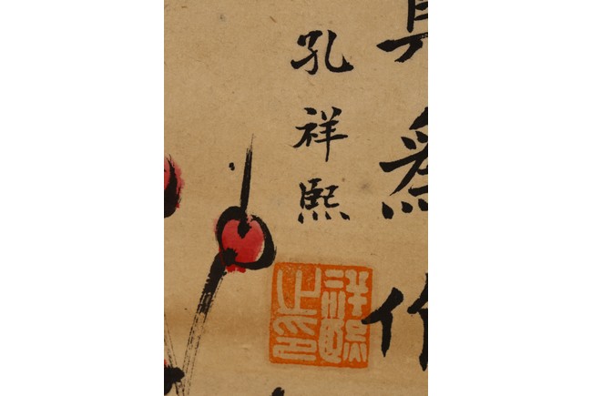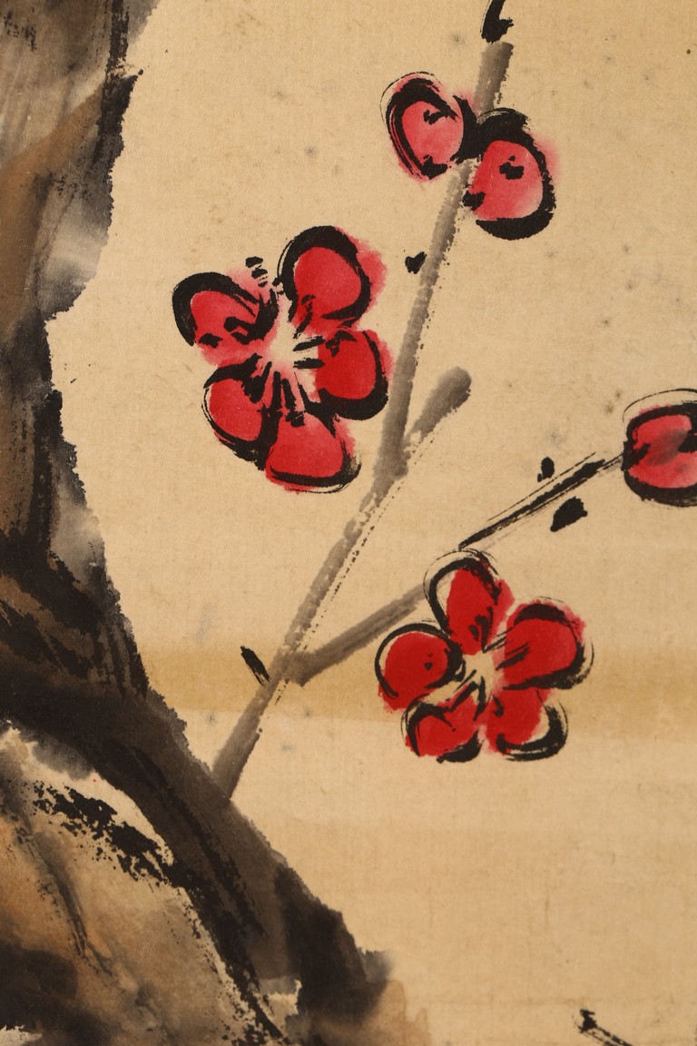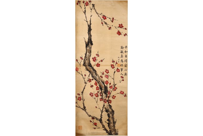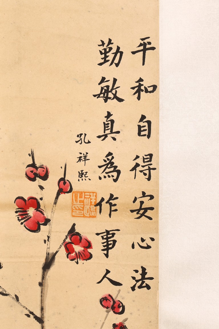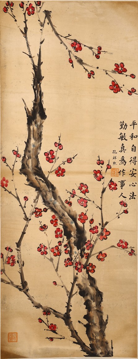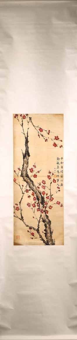 A COLOR AND INK 'PLUM BLOSSOMS' PAINTING, H. H. KUNG 孔祥熙 寒梅圖 設色紙本 立軸