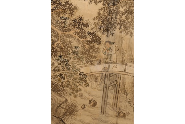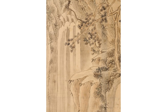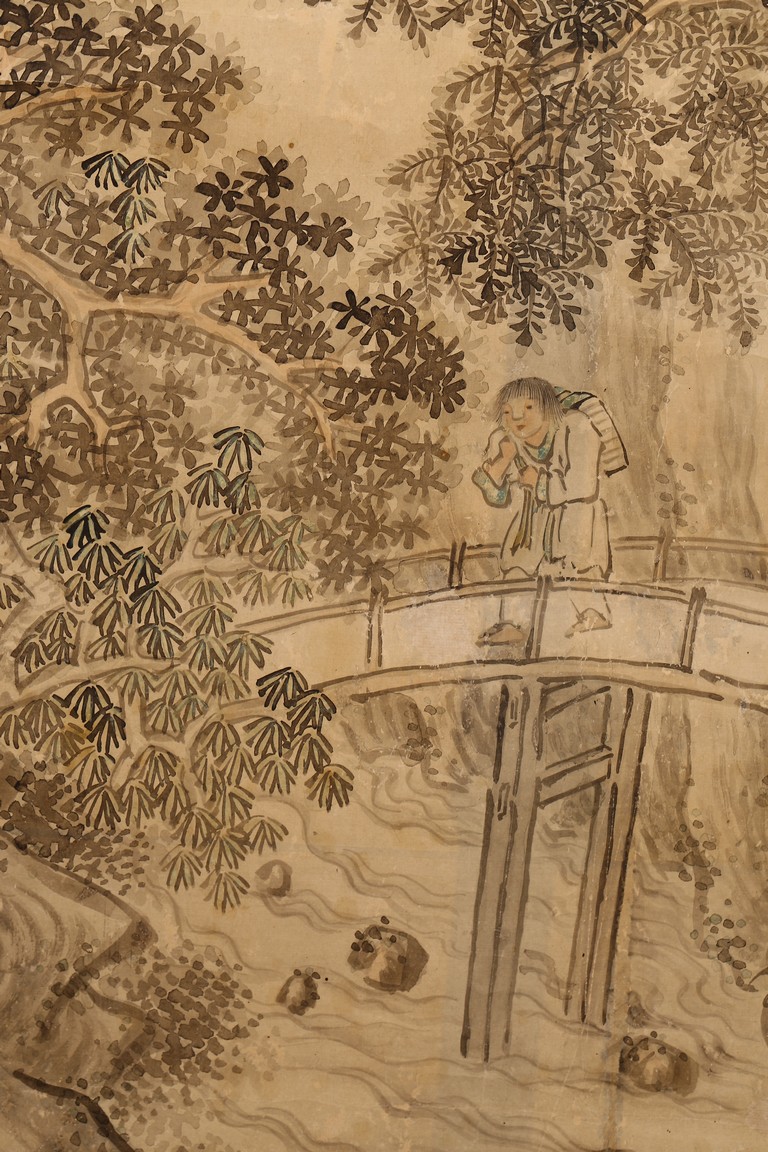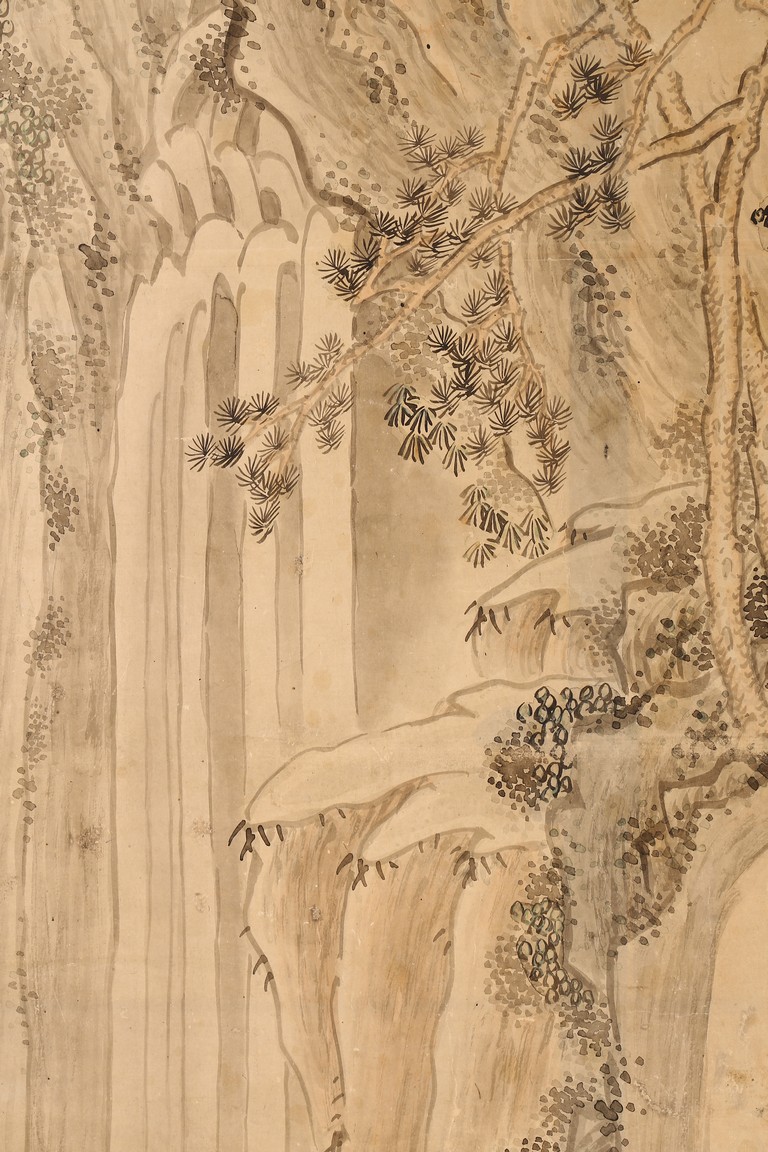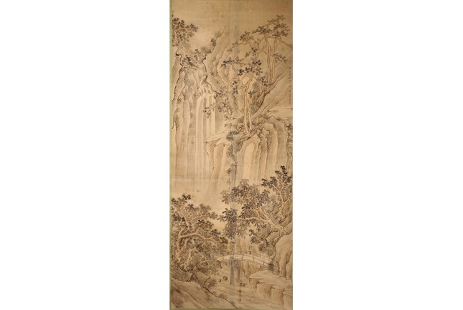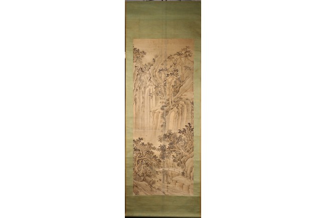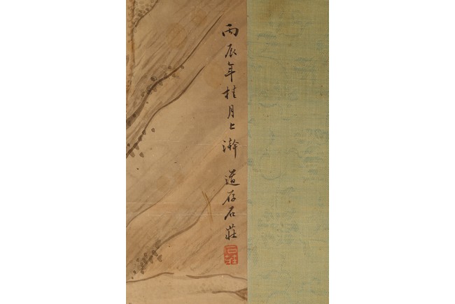 Color and ink on paper. Landscape. Hanging scroll. Inscribed and signed Shi Zhuang, with two seal marks.