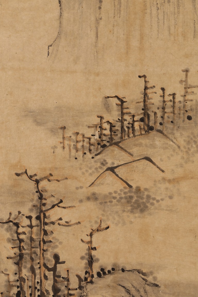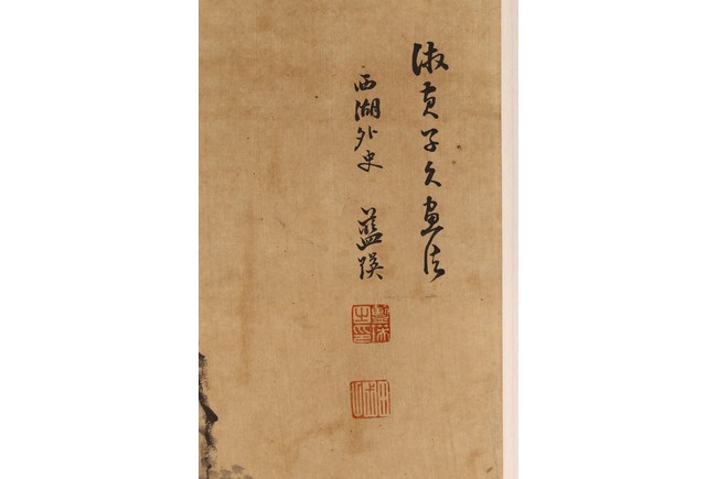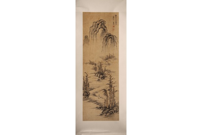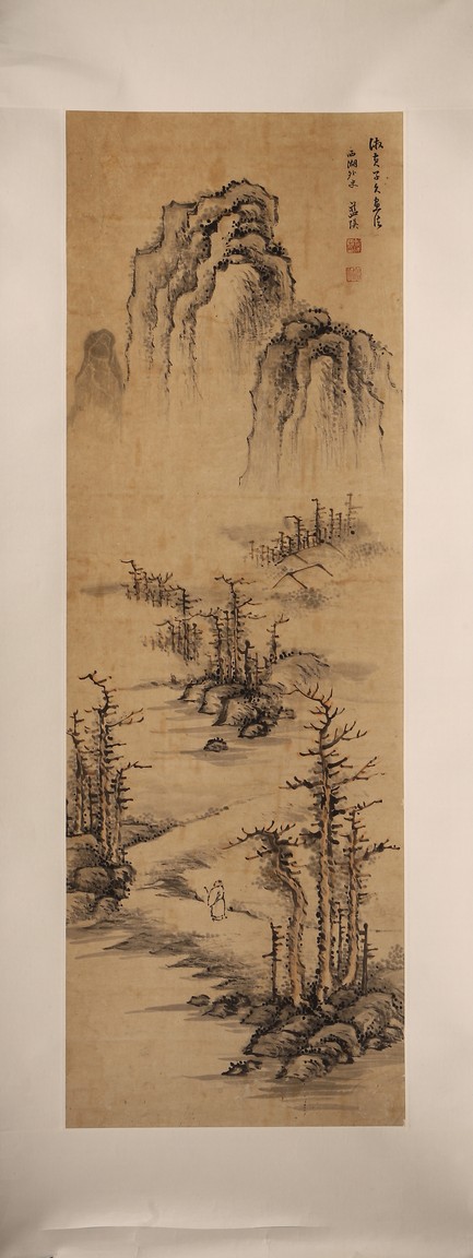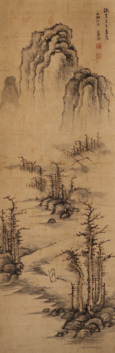 Ink on paper. Landscape. Hanging scroll. Inscribed and signed Lan Ying, with seal marks of the artist.
