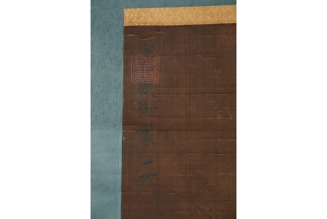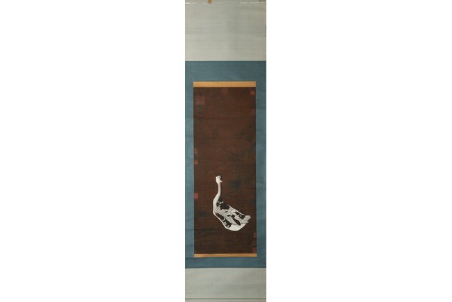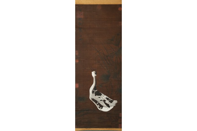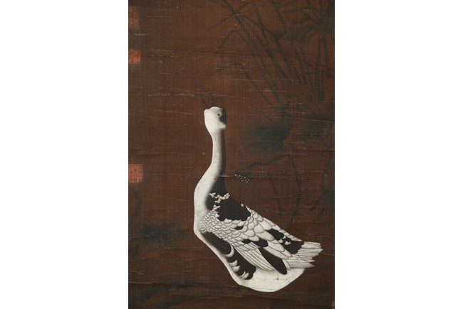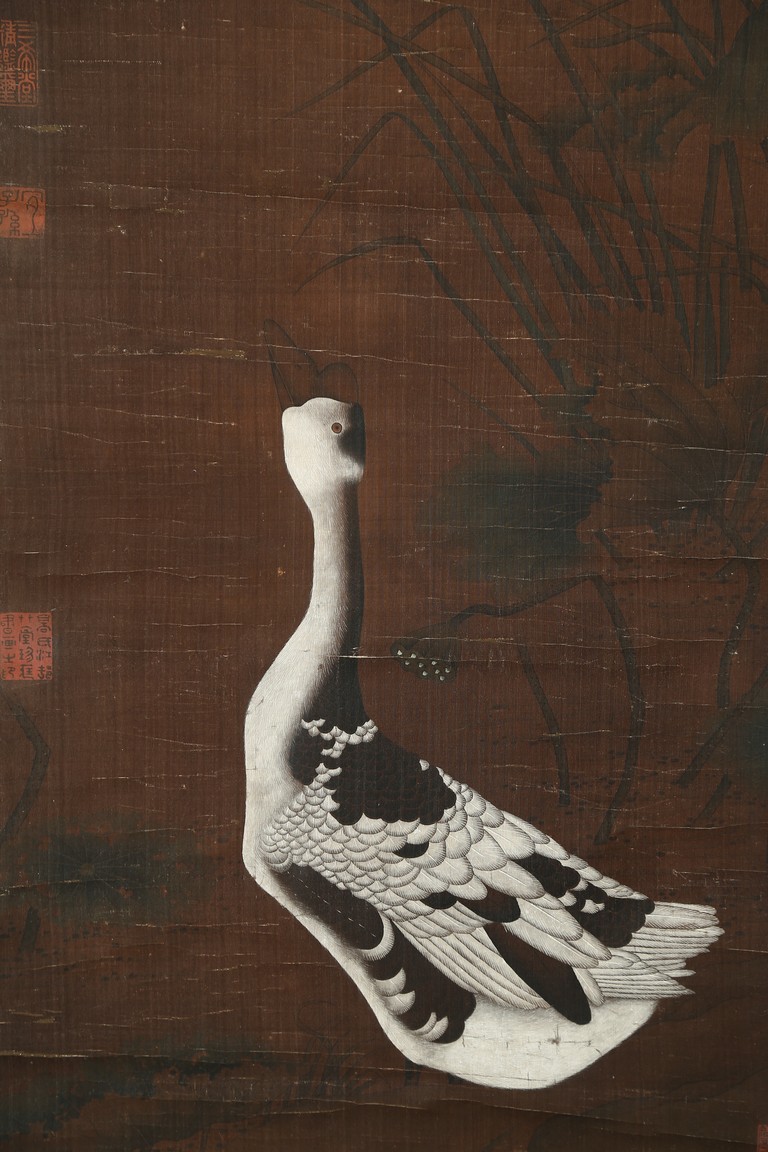 AN INK AND COLOR ON SILK PAINTING 鵝 設色絹本 立軸