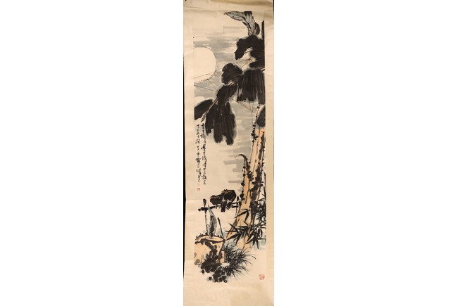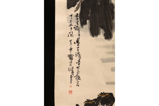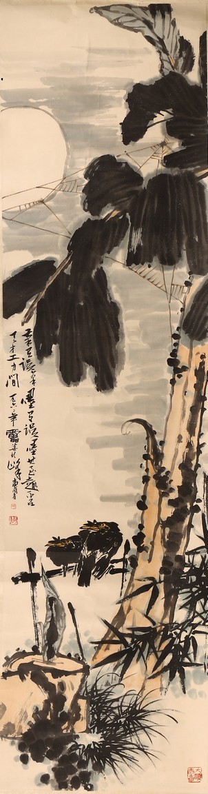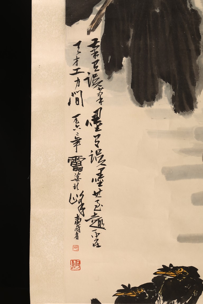 A COLOR AND INK 'BIRDS' HANGING SCROLL PAINTING 潘天壽 花鳥 設色紙本