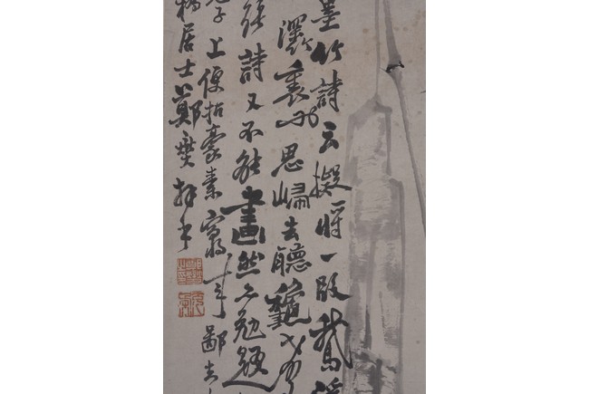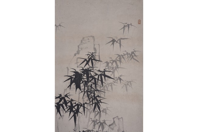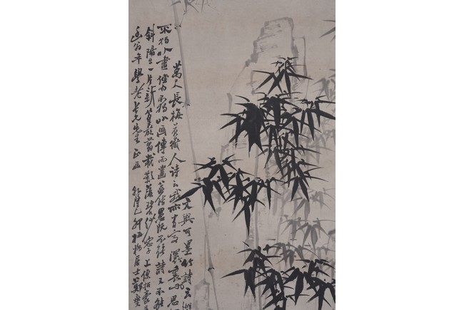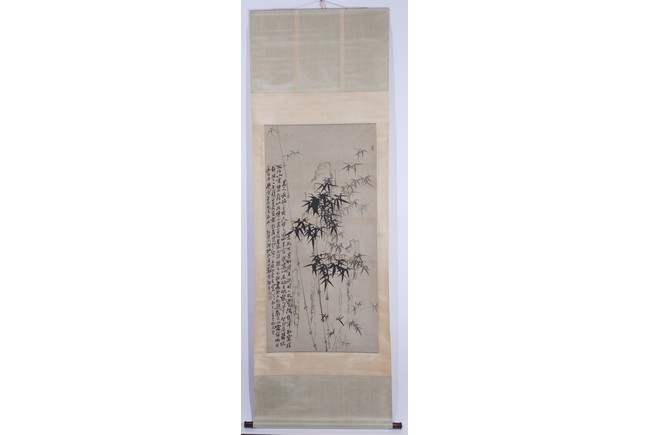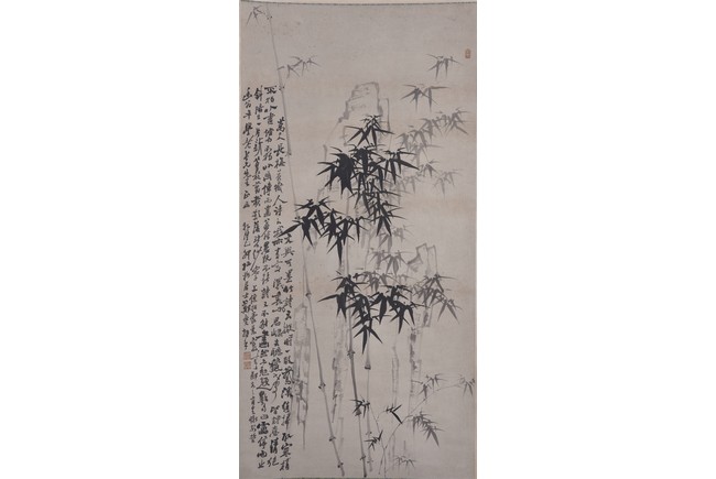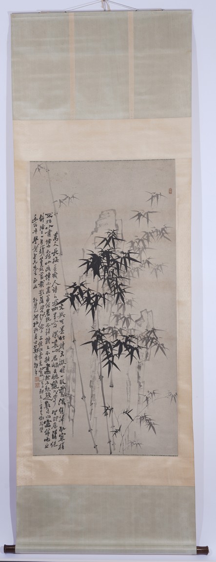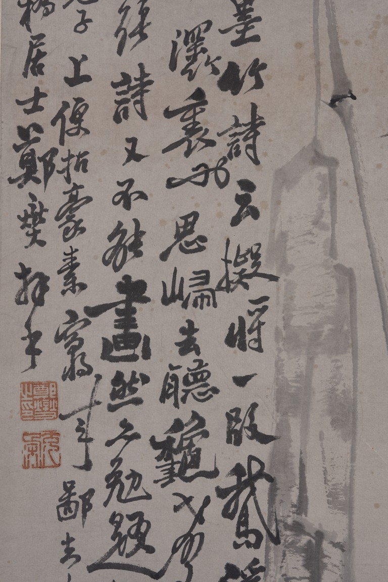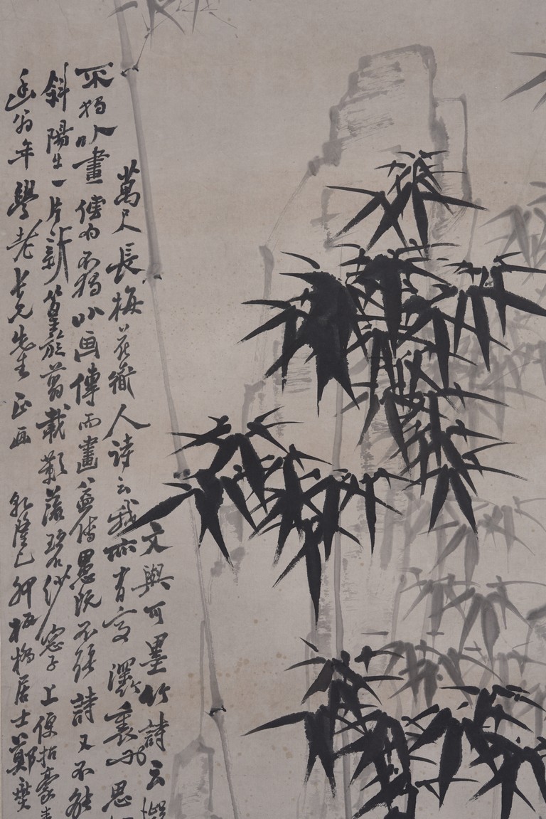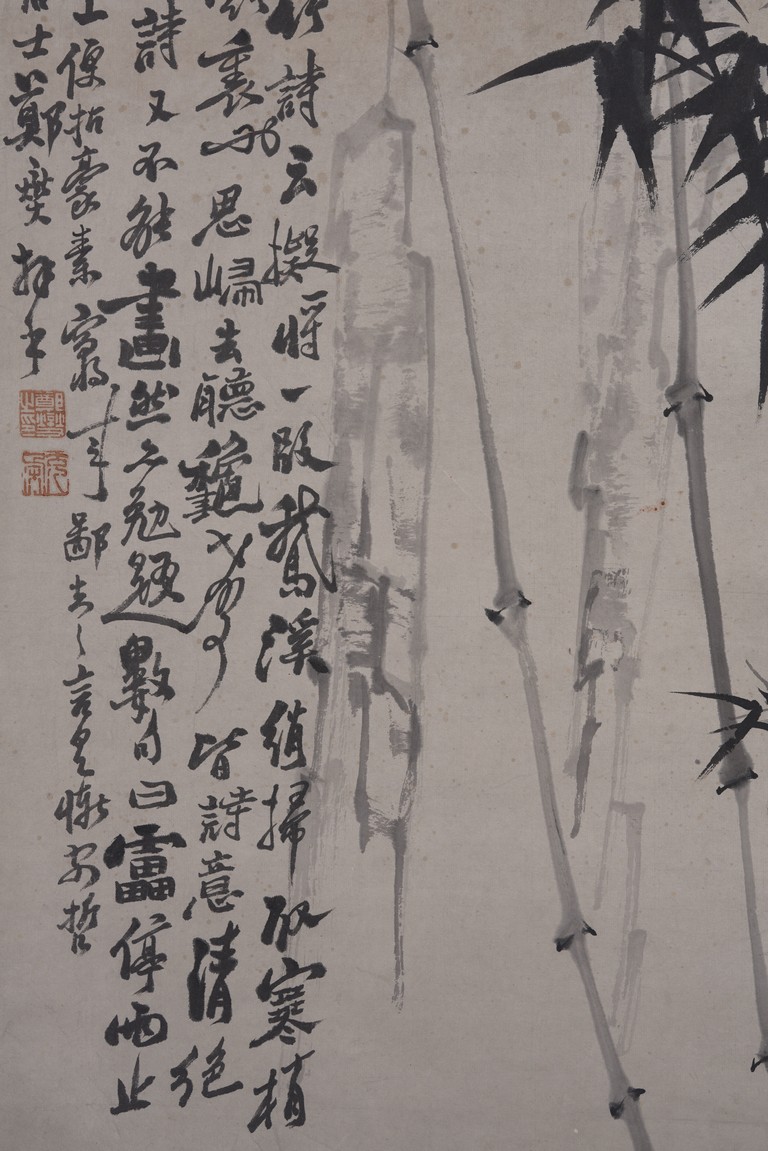 Ink on paper. Bamboo. Inscribed and signed Zheng Xie, with three seal marks of the artist. Hanging scroll.