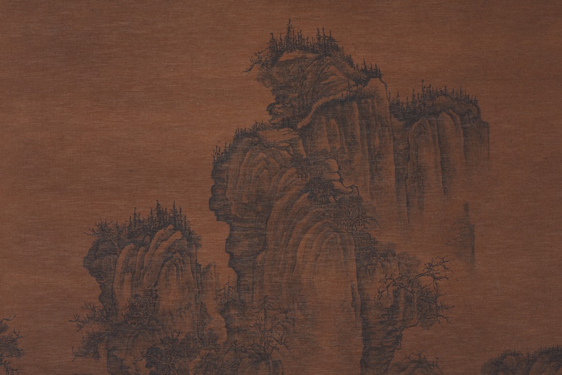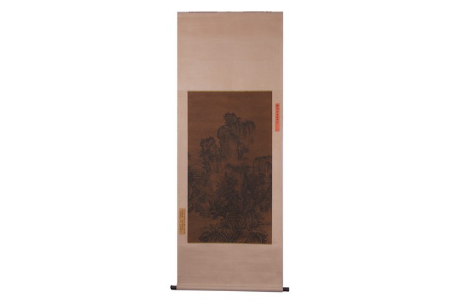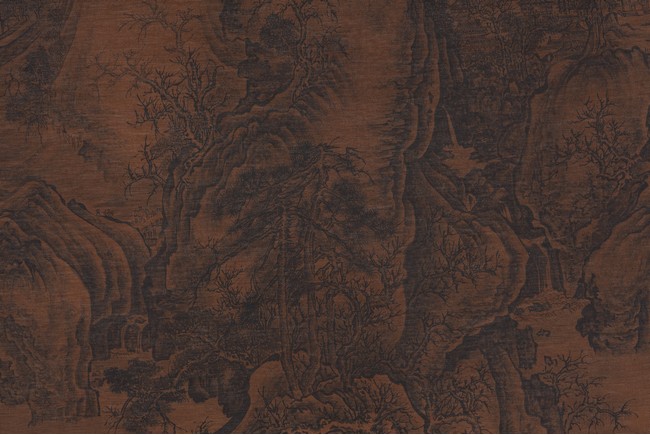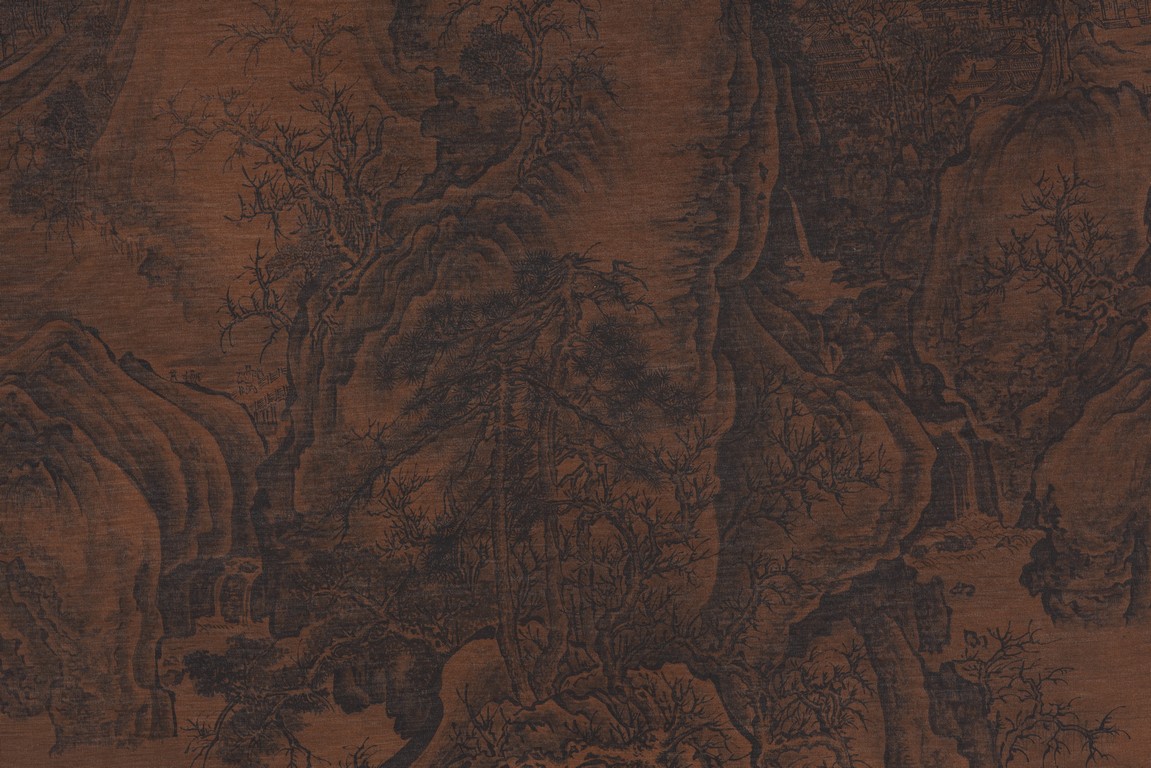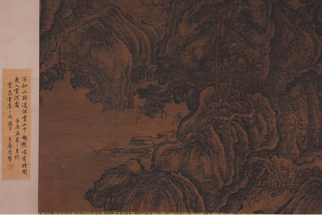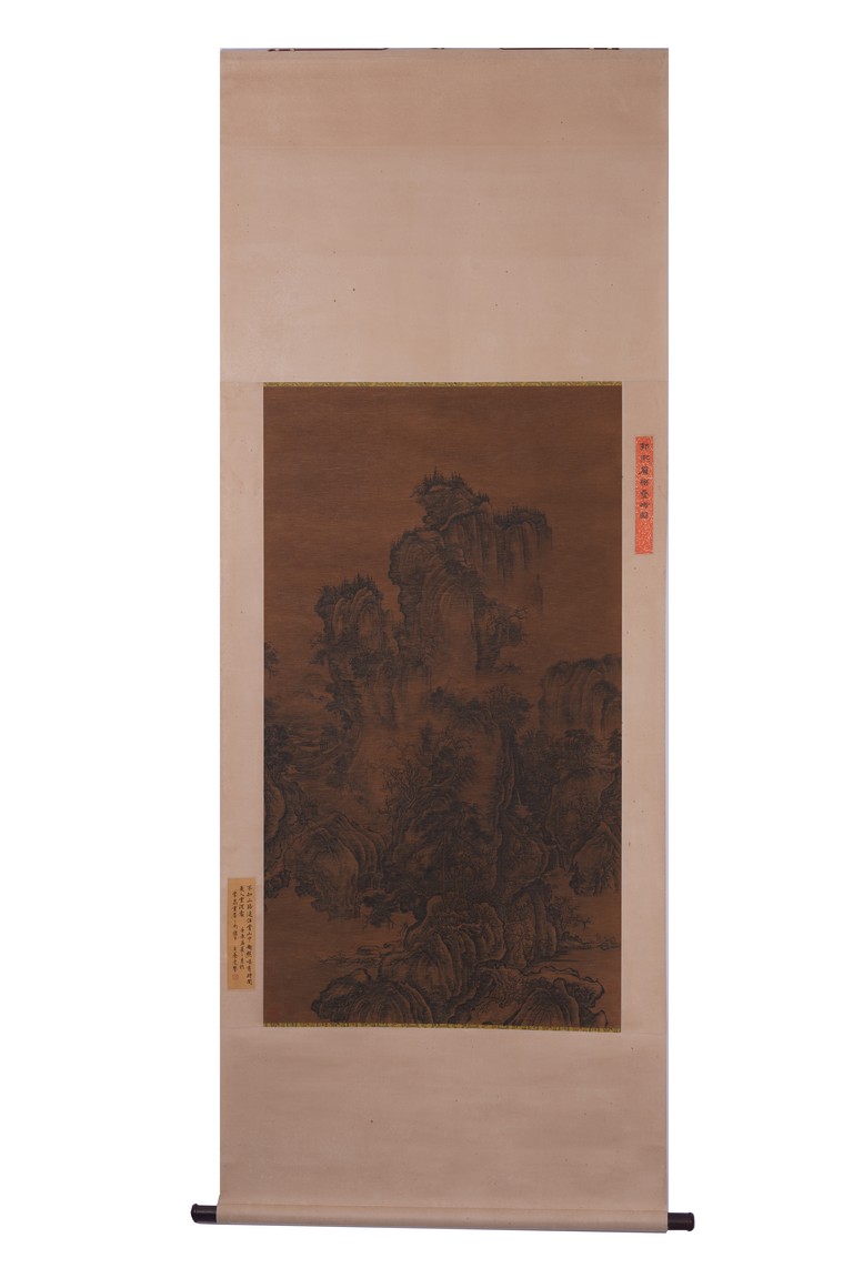 Ink on silk. Landscape. Hanging scroll. With colophons signed Wang Yangdu. Attributed to Guo Xi