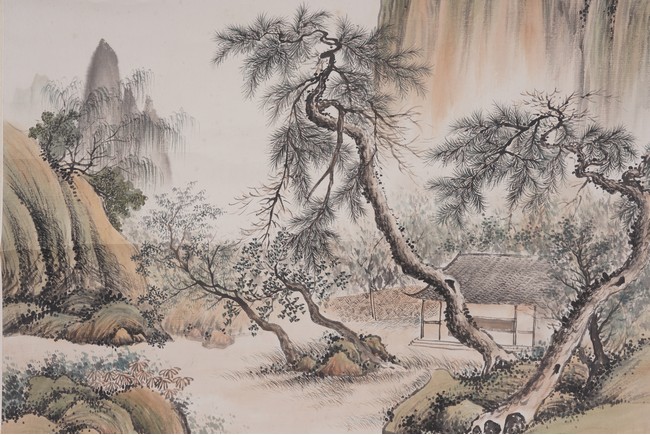 落款:倩庵吳湖帆 慎得馮超然 鈴印:梅景書屋 超然 慎得 (吳湖帆:清代著名書畫家吳大澄之孫。現代繪畫大師,書畫鑒定家。馮 超然:名迥,號滌舸,晚號慎得。別署嵩山居士,室名嵩山草堂。技宗唐寅、 仇英。人物、山水、花卉均長,晚年專繪山水,有文徵明之秀逸。)