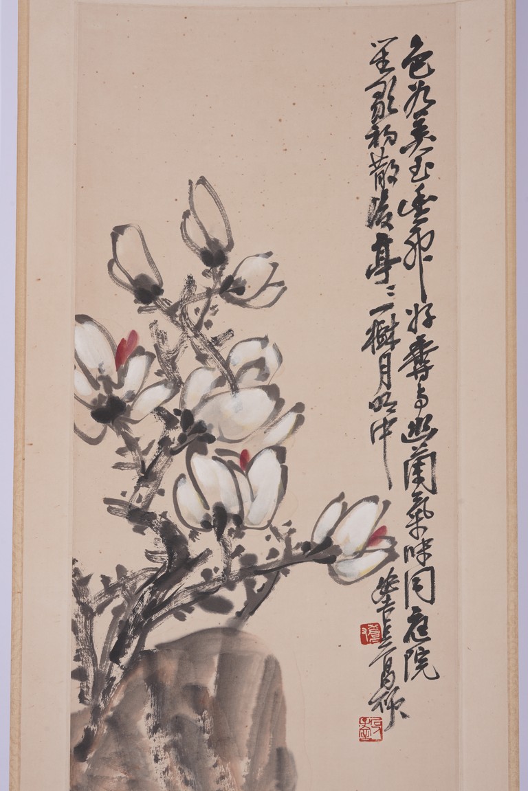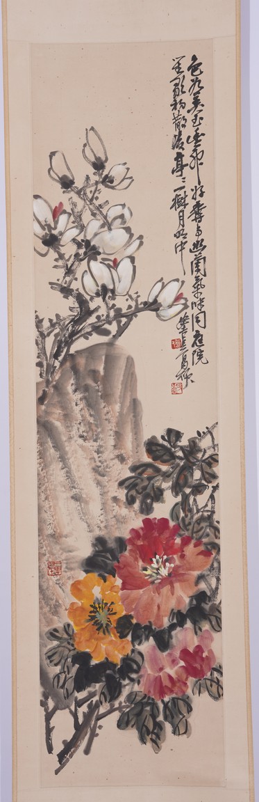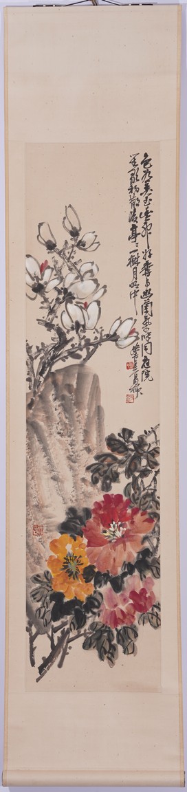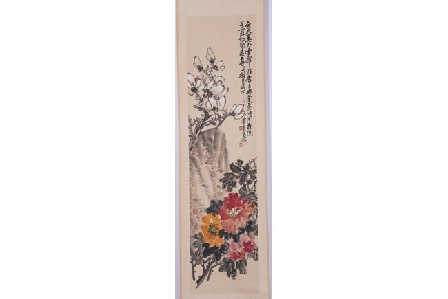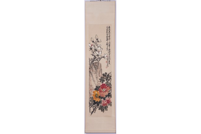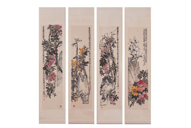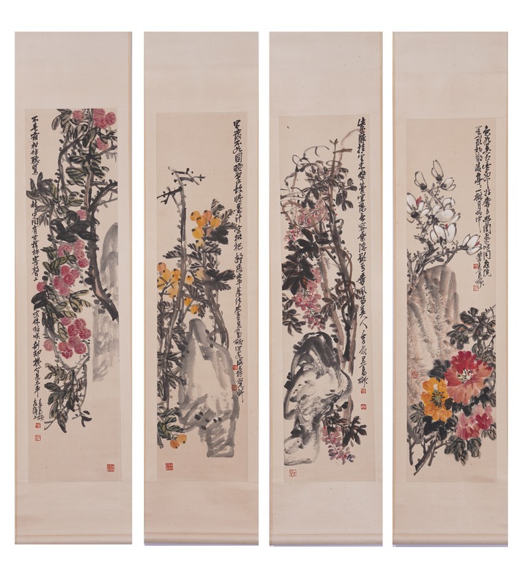 Color and ink on paper. flowers. set of four. Inscribed and signed Wu Changshuo, with seal marks of the artist.