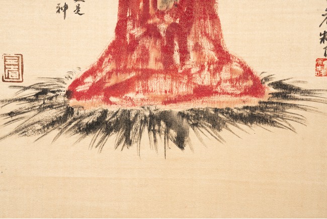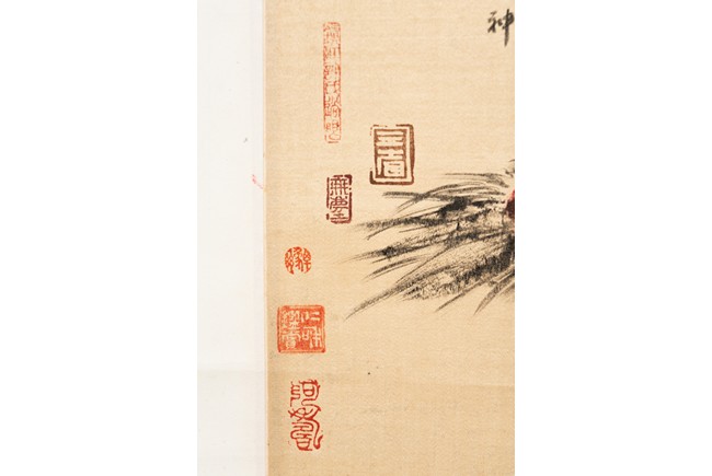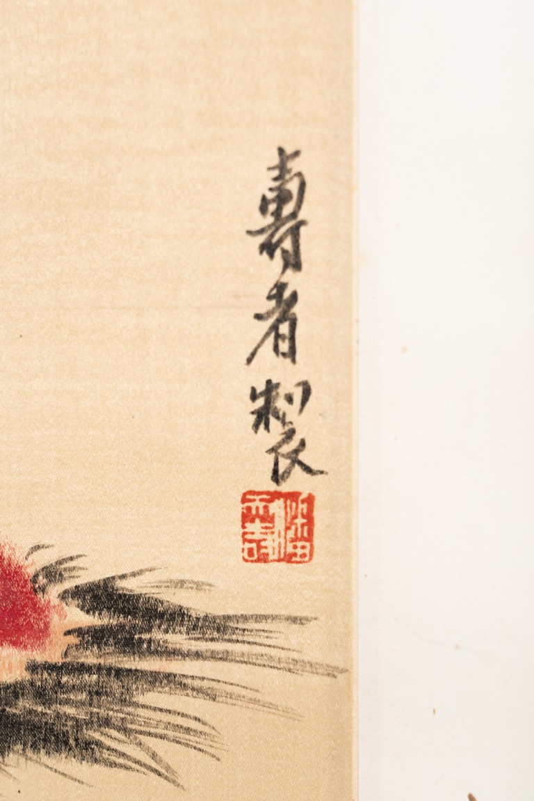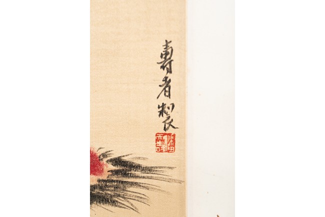 落款:壽者制(天壽:字大頤,自署阿壽、壽者。現代畫家、教育家。其寫意花鳥初學吳昌碩,後取法石濤、八大,曾任中國美術家協會副主席、浙江美術學院院長等職。)