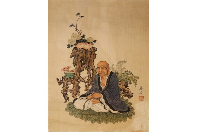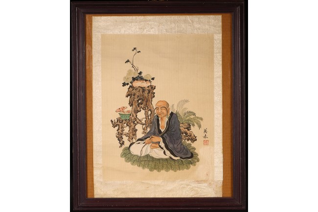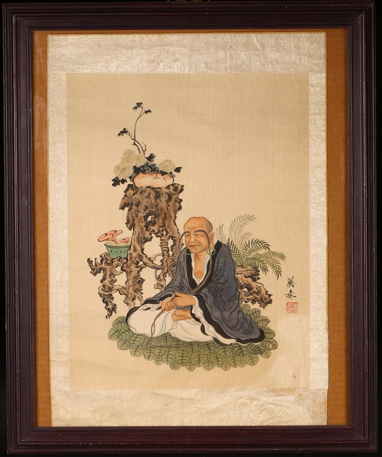 Color and ink on paper. Luohan. Framed. Signed Hai Sen with one seal mark.