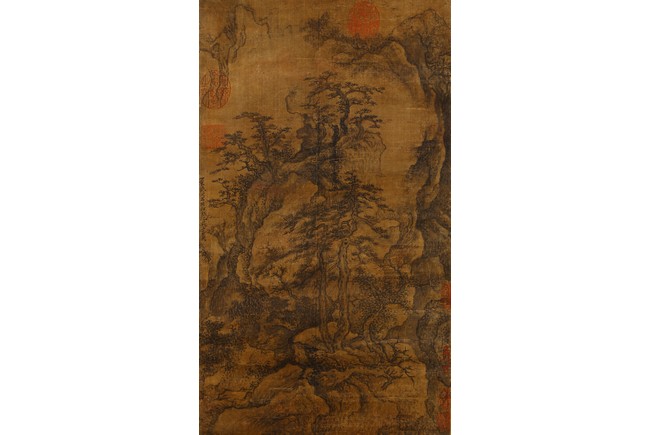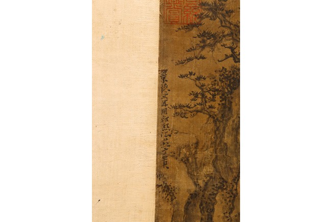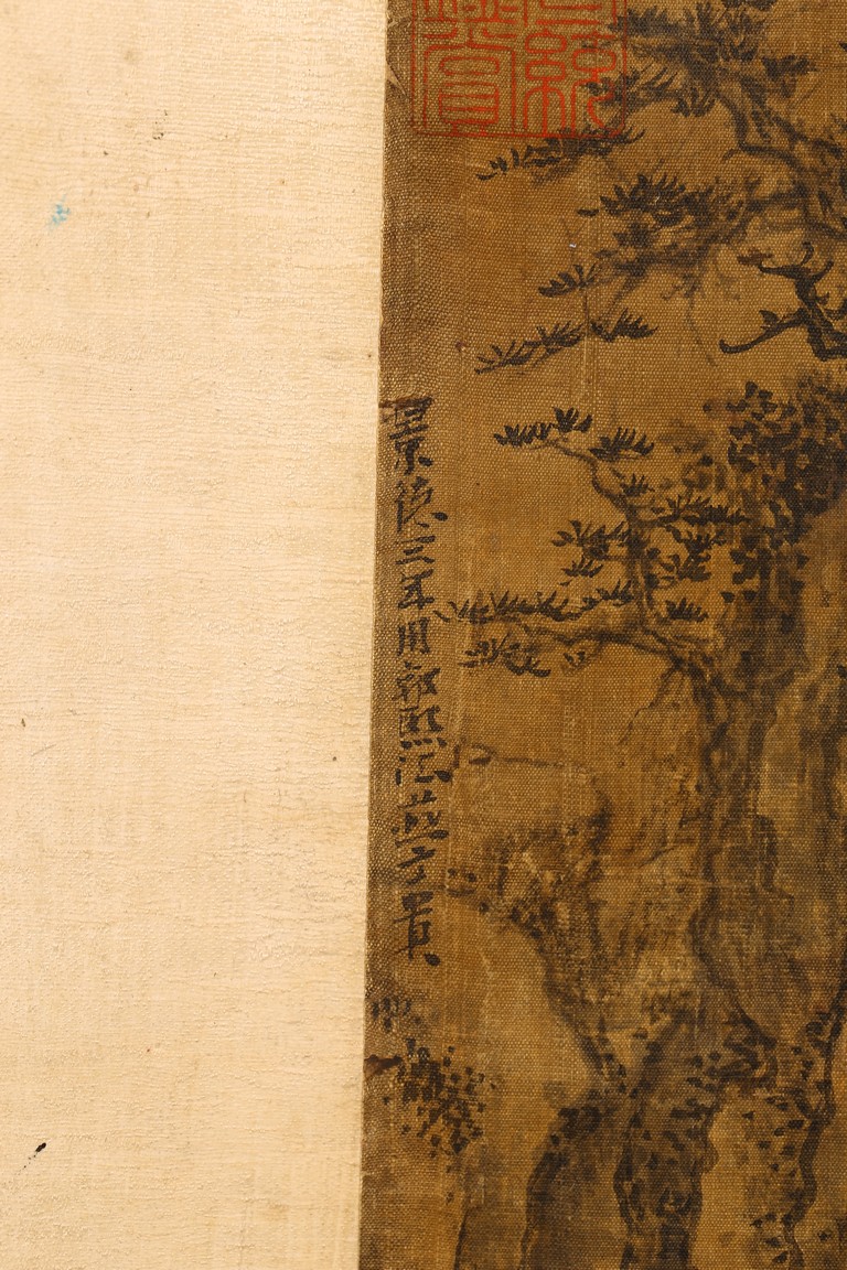 A COLOR AND INK ON SILK 'LANDSCAPE' HANGING SCROLL 山水 水墨絹本 立軸