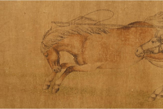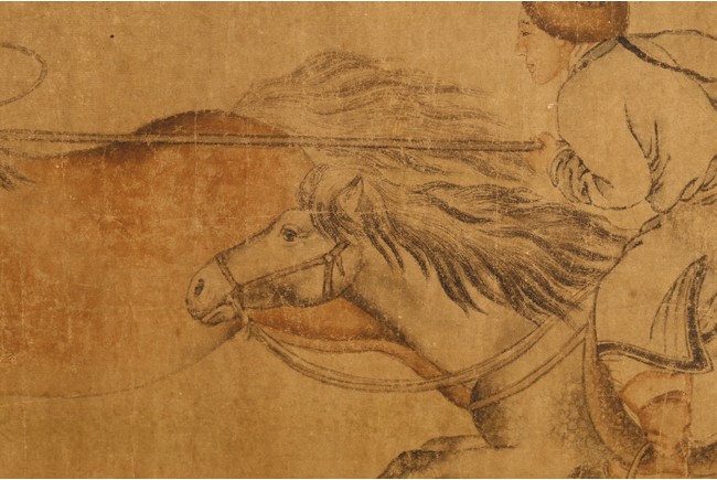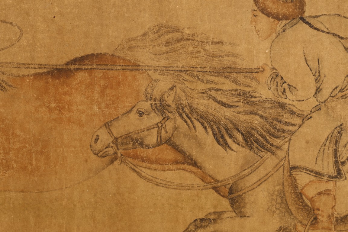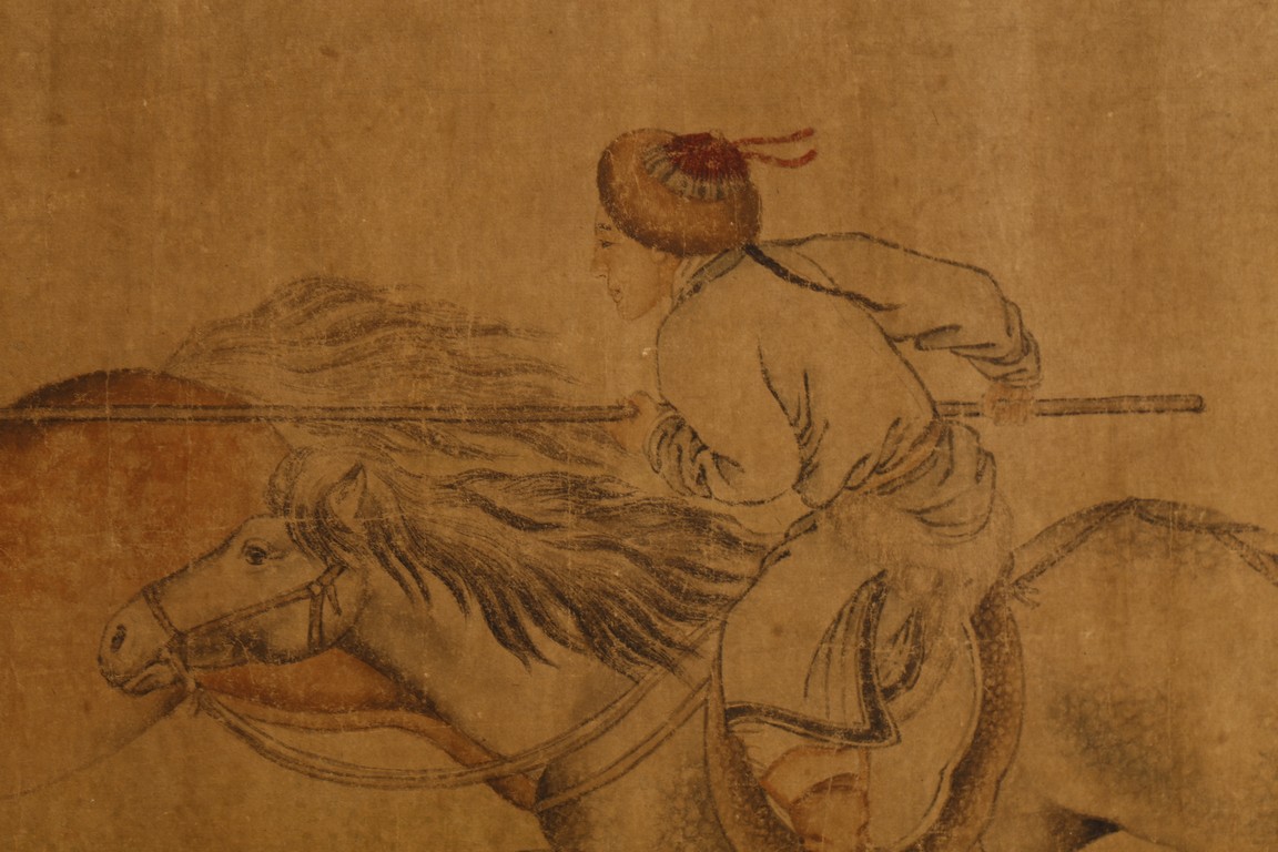 A COLOR AND INK ON PAPER 'HUNTING' PAINTING 佚名 設色紙本 狩獵 鏡片