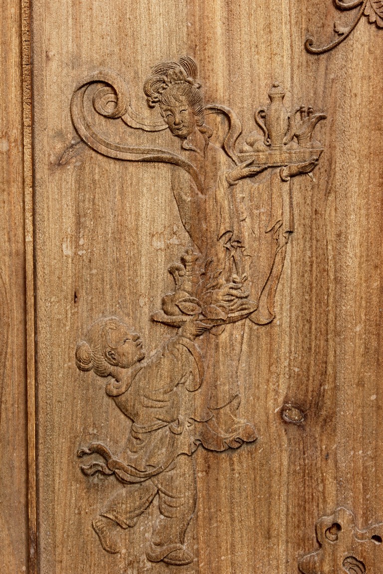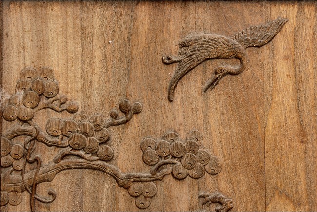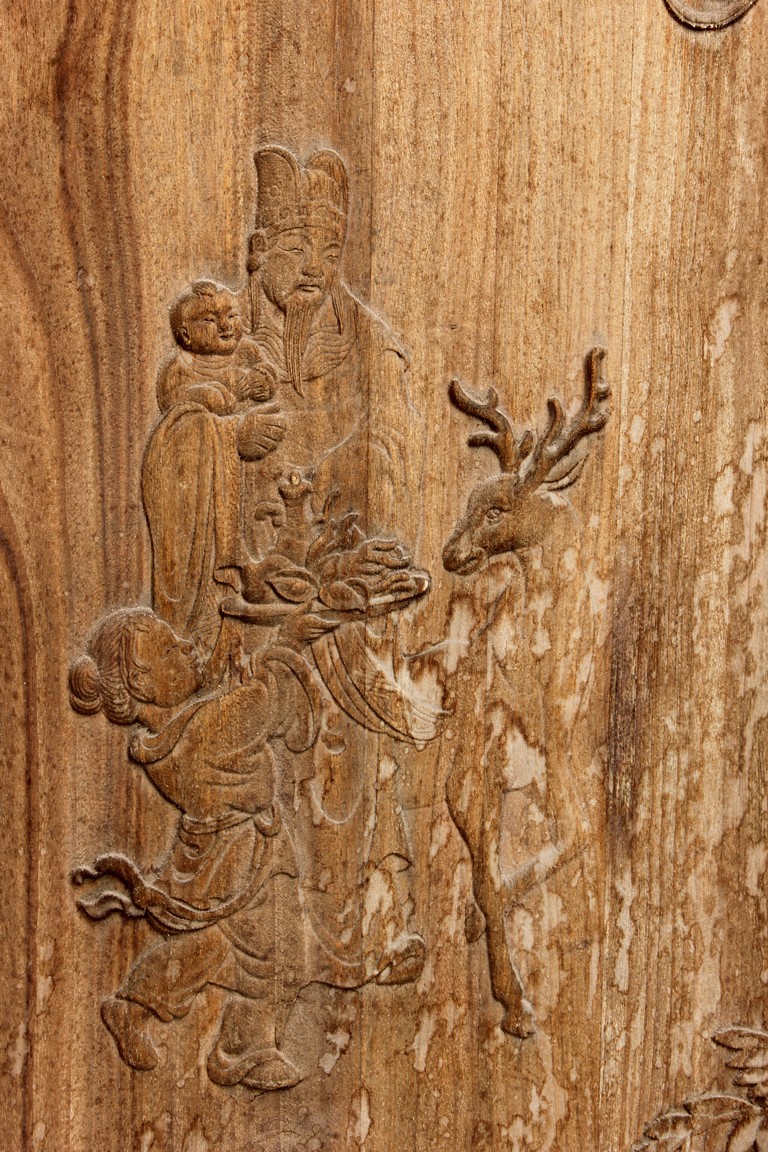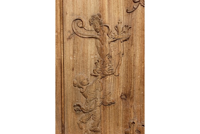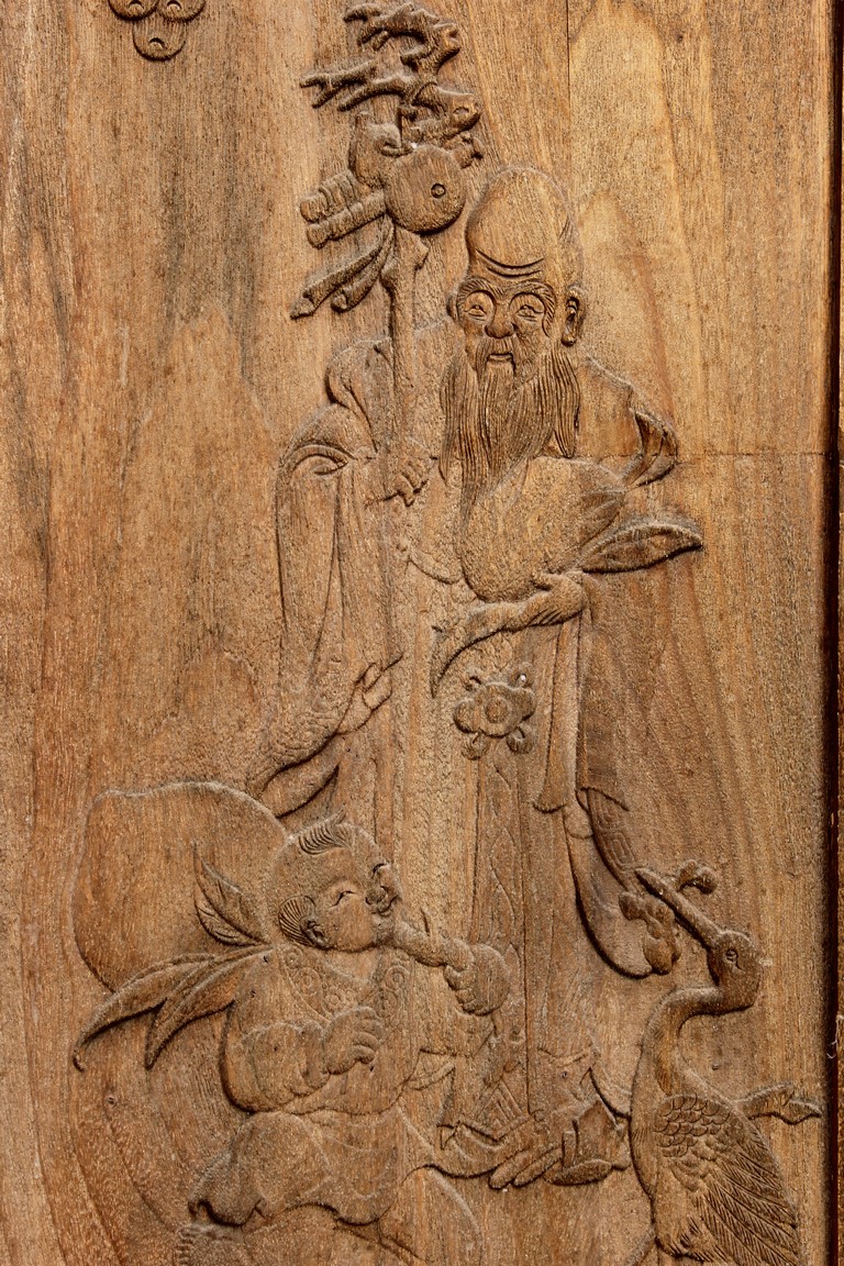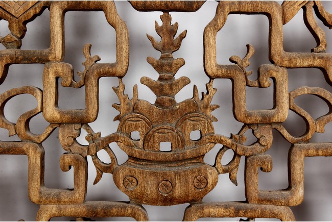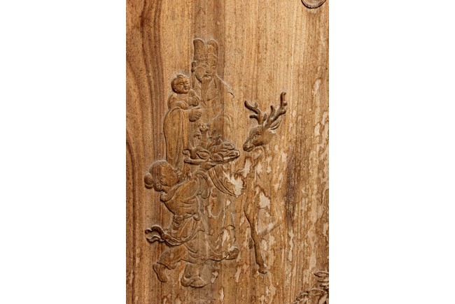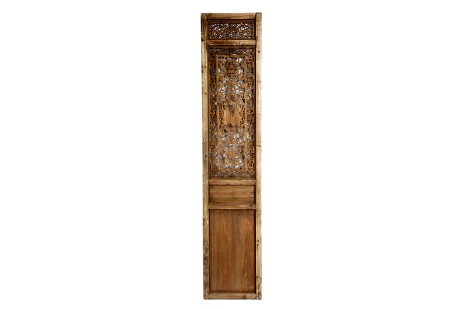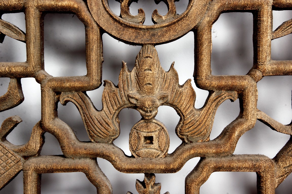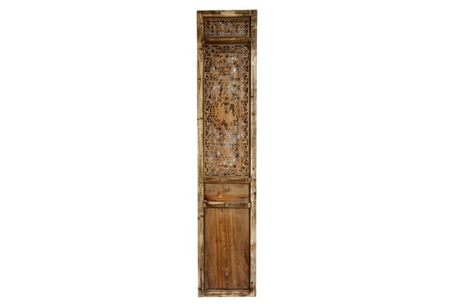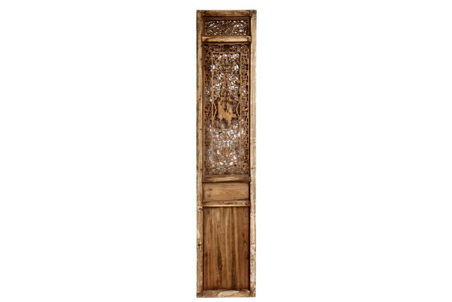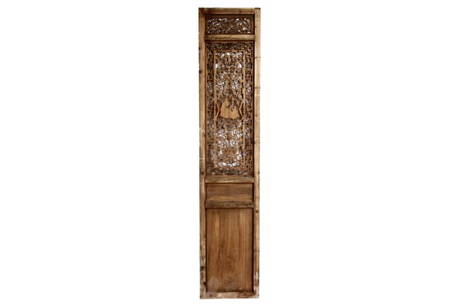 500" Each of rectangular form, the upper panel carved and pierced with intricate patterns and a stylized 'shou' character, the middle section elegantly pierced with figures flanked by auspicious motifs and key-fret patterns. The lower section carved in relief with figures from stories. Qing Dynasty period.