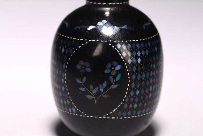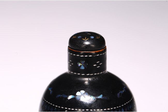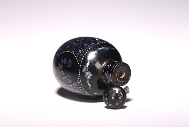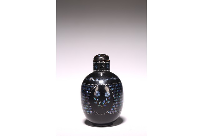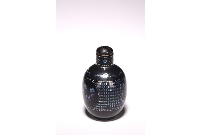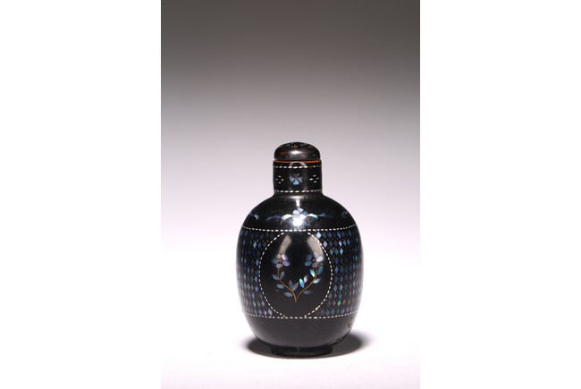A CHINESE BLACK LACQUER MOTHER OF PEARL SNUFF BOTTLE 清 黑漆螺鈿鼻煙壺