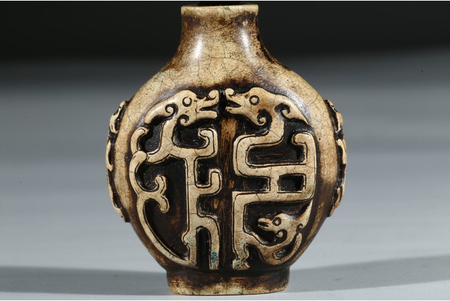 A JADE CARVED DRAGON SNUFF BOTTLE 清 玉雕雙龍鼻煙壺