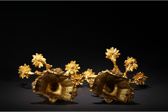 A PAIR OF LARGE EUROPEAN GILT CANDLESTICKS 十九世紀 西洋銅鎏金天使燭臺一對