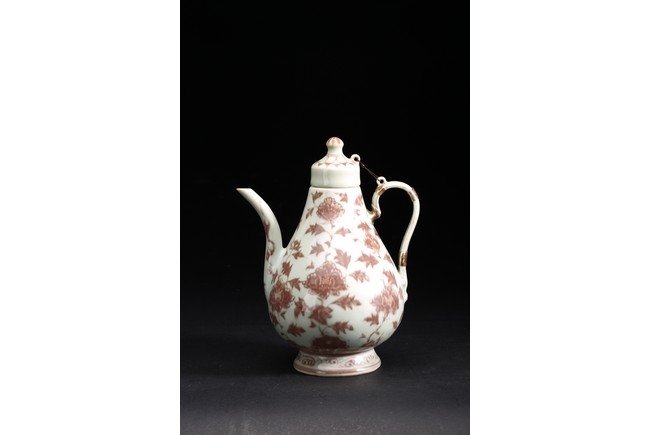 Of pear Shaped, the exterior painted with flower decorations, handle wrapped with silver. Ming Dynasty period.